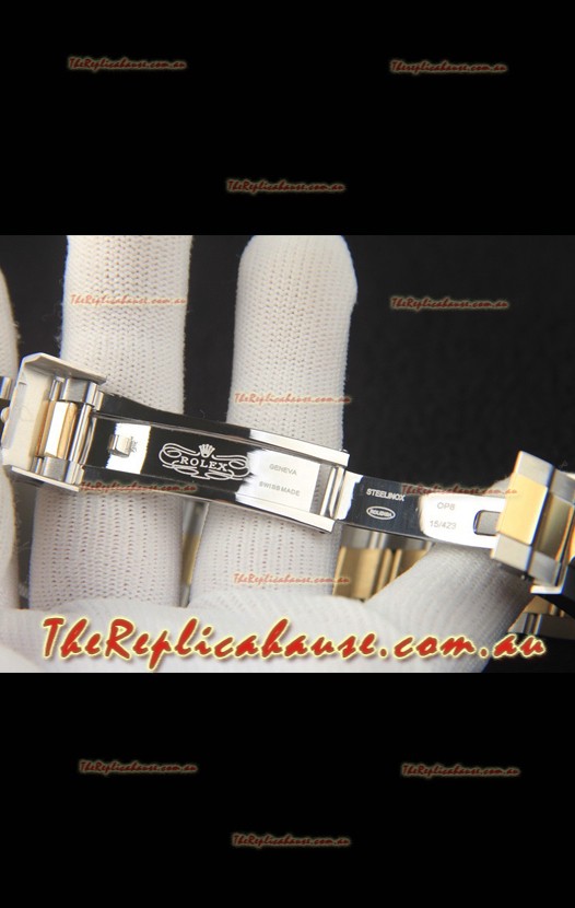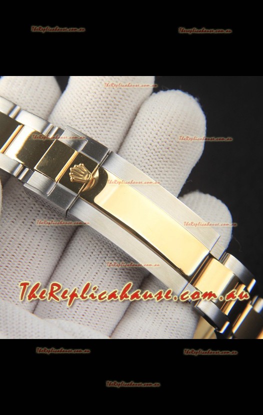 18K Two Tone Yellow Gold Plating on 904L Stainless Steel Strap in with Rolex Buckle complete with Rolex Markings/Engravings