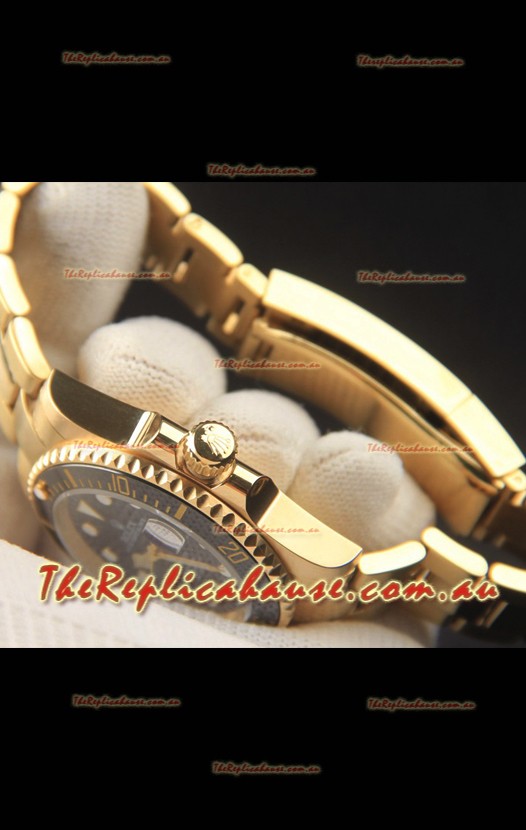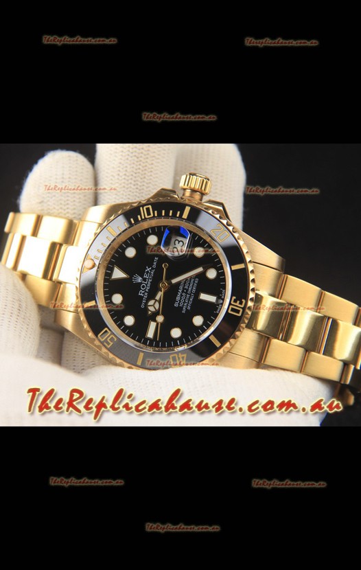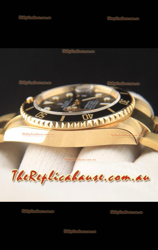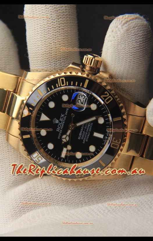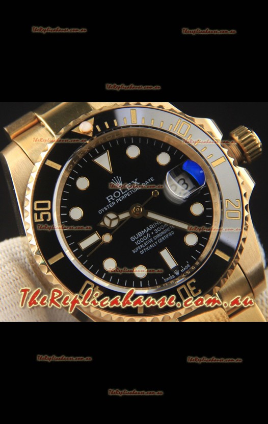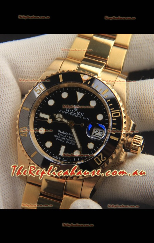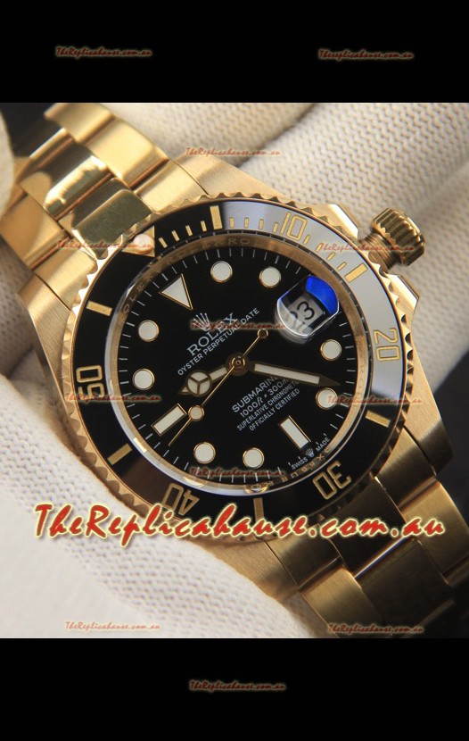 Rolex Submariner Japanese Replica Watch 904L Steel Yellow Gold - Ceramic Bezel in Black
