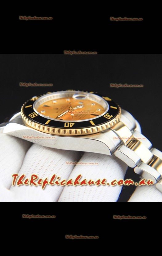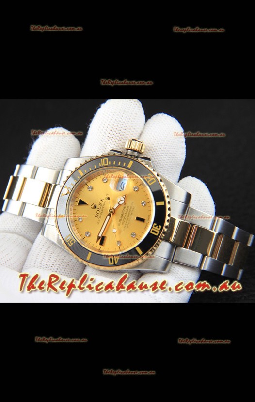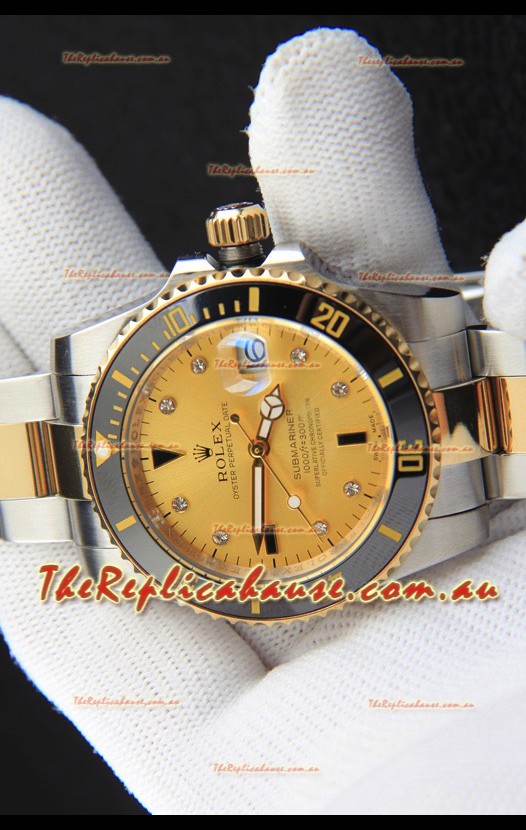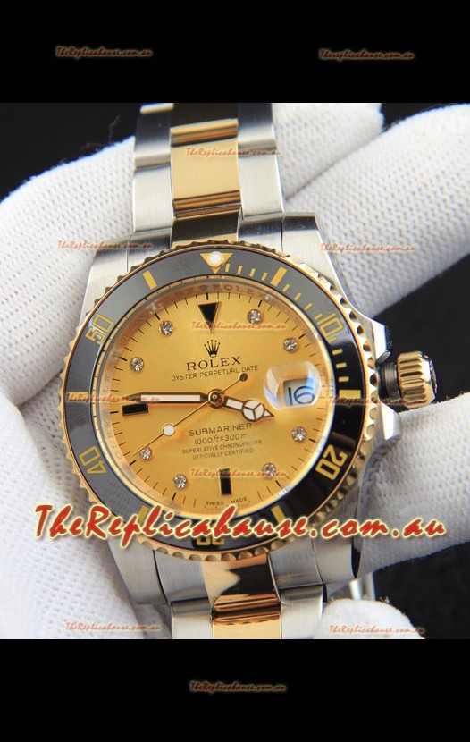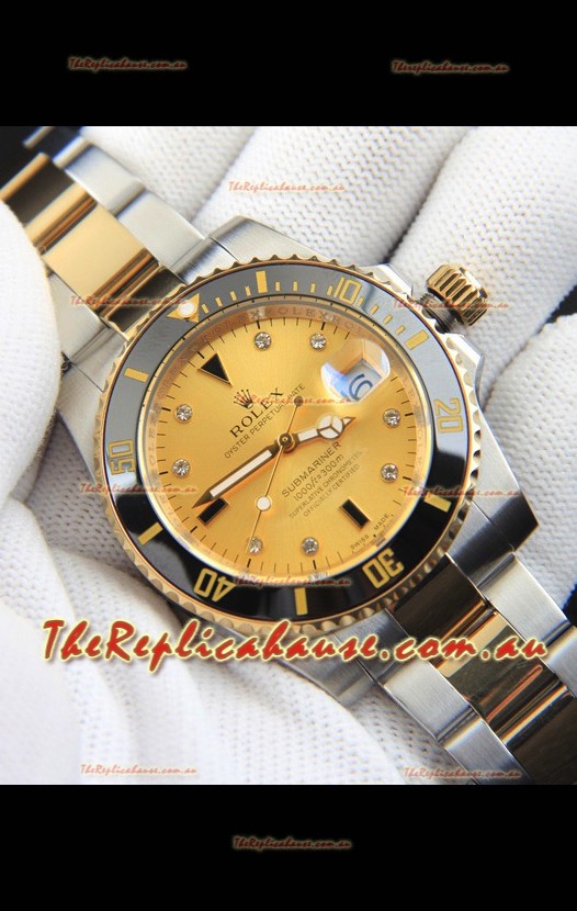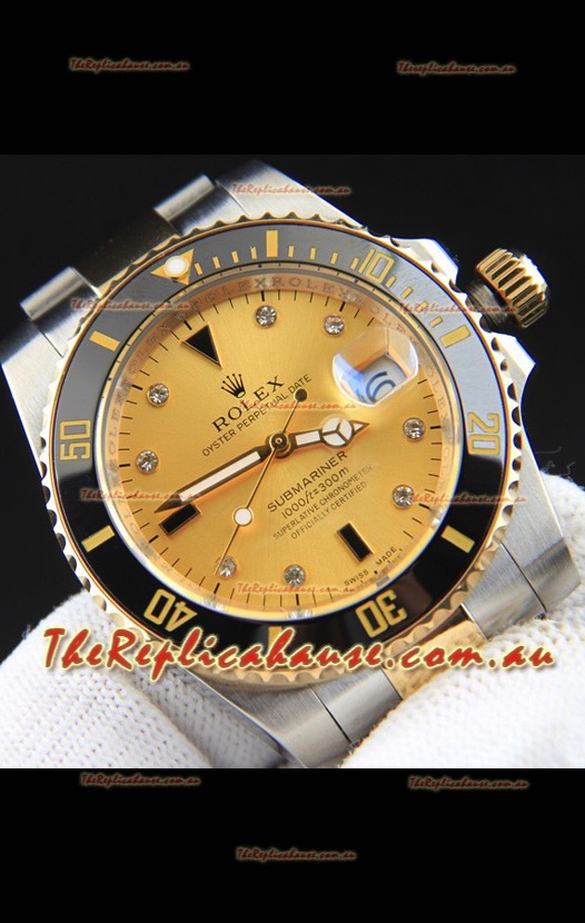 Rolex Submariner Japanese Replica Watch in 2 Tone Yellow Gold Casing Gold Dial