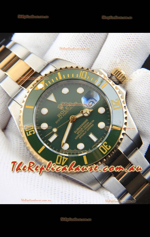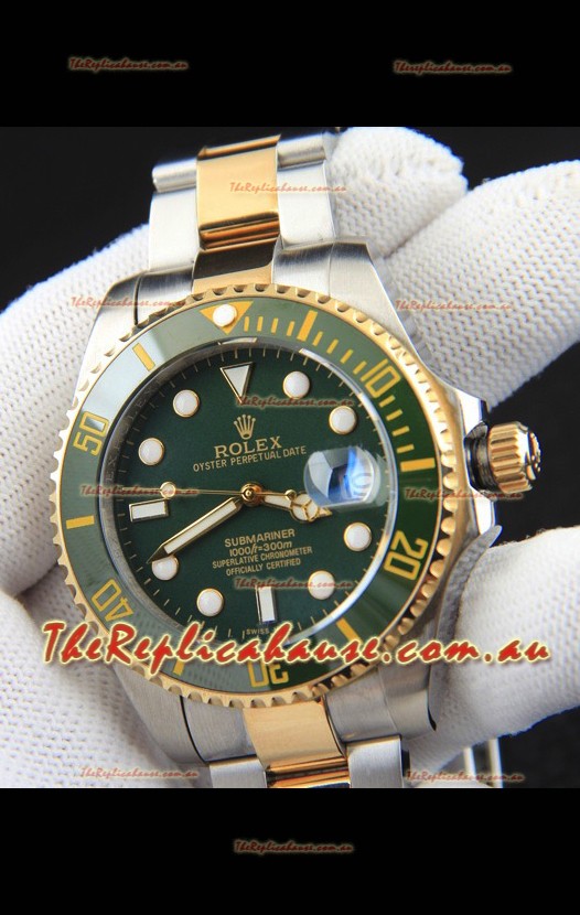Rolex Submariner Japanese Replica Watch in 2 Tone Yellow Gold Casing Green Dial
