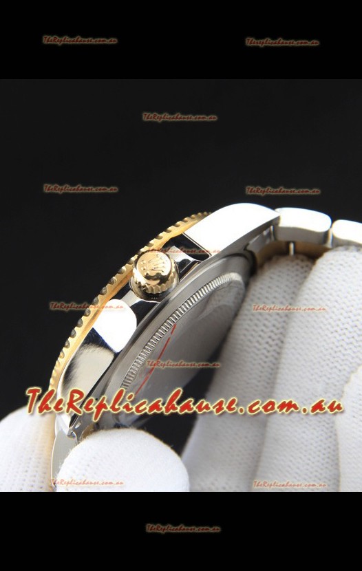 18K Two Tone Yellow Gold Plating on 904L Stainless Steel Casing, Ceramic Bezel with Solid Rear back Case