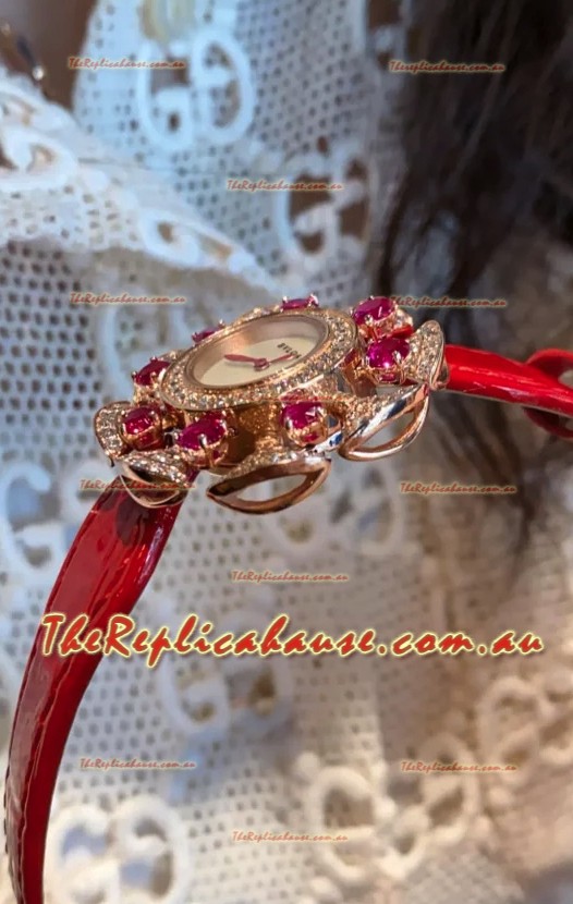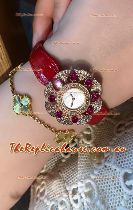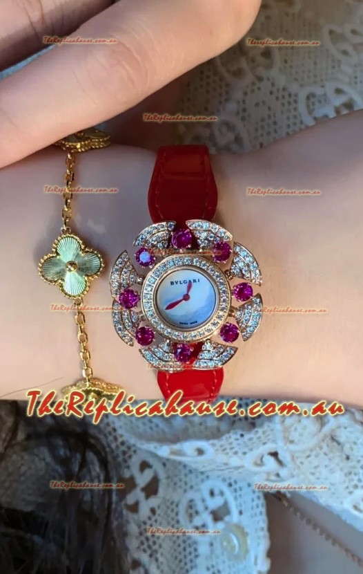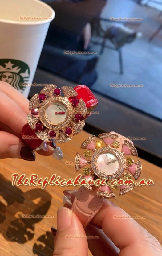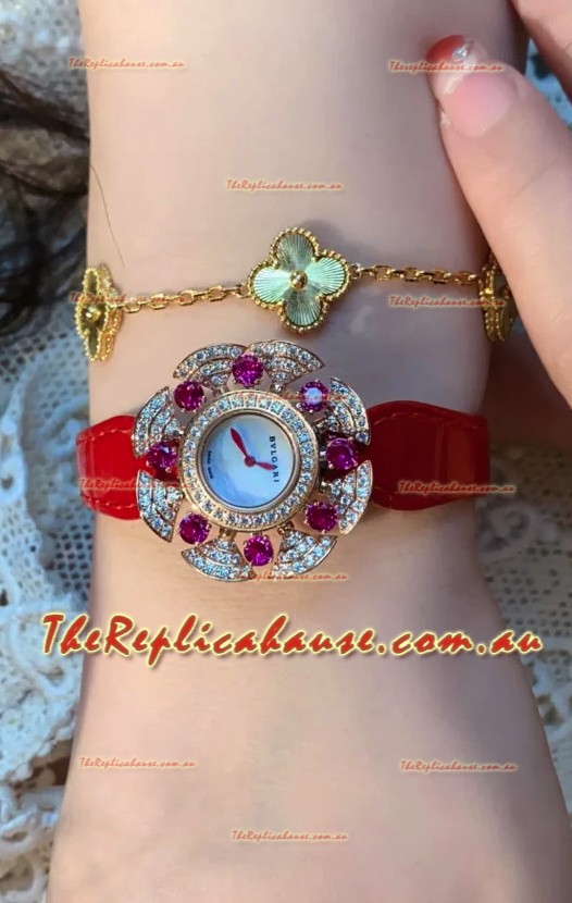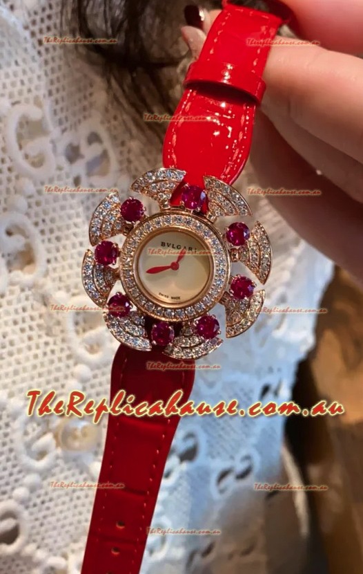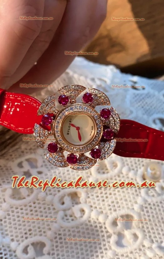 Bvlgari Divas's Dream Edition Watch in Rose Gold Casing - Diamonds Paved Bezel Swiss Replica