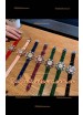 Rose Gold Plating on 904L Polished Steel Casing with Stainless Steel Bezel embedded with Swiss Cut diamonds.