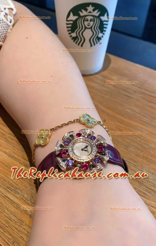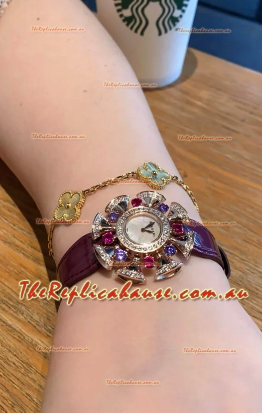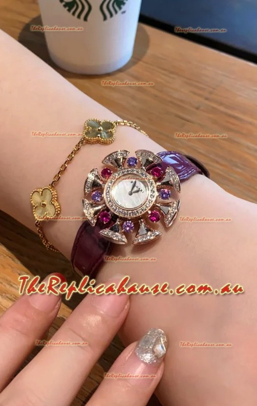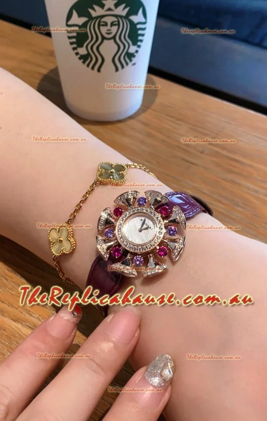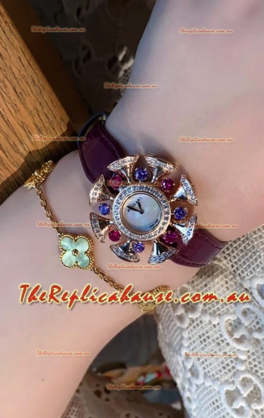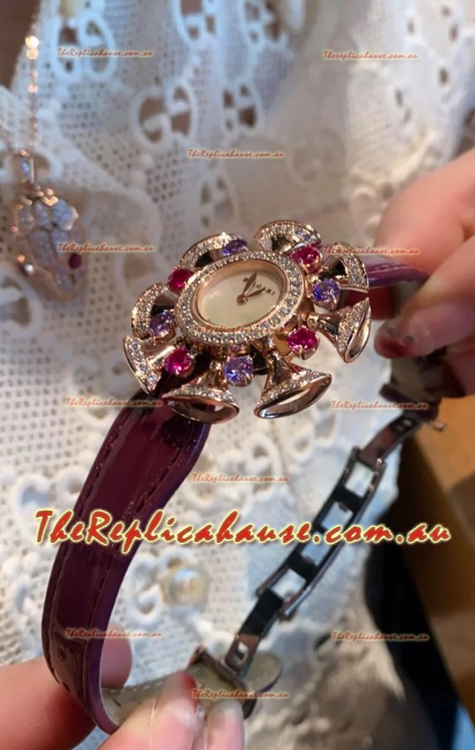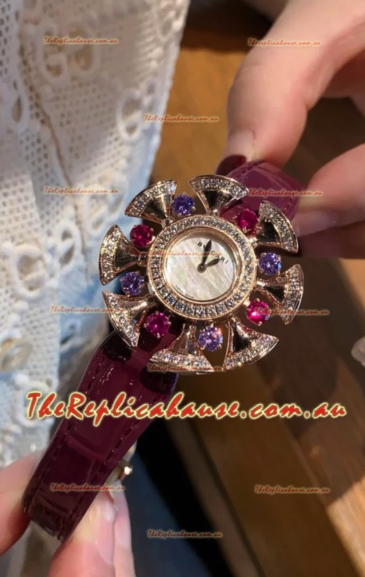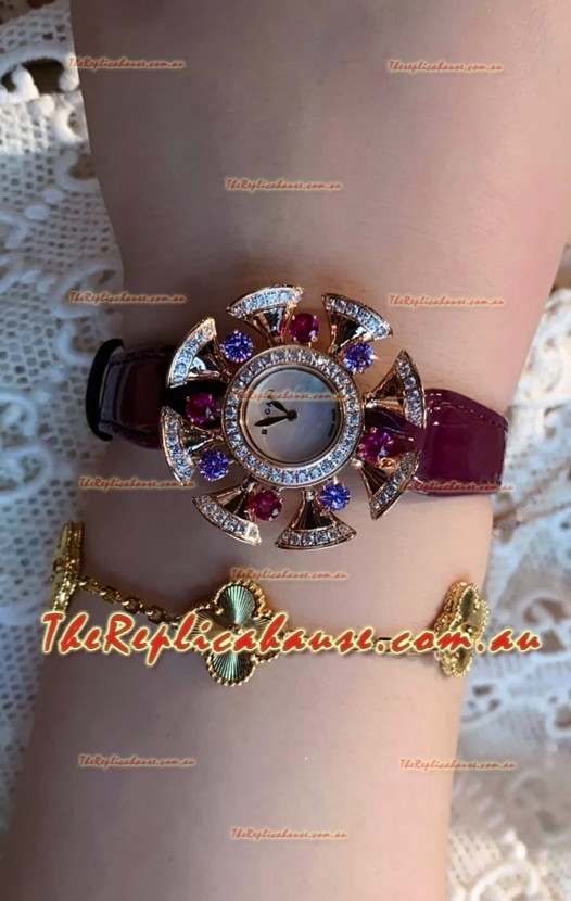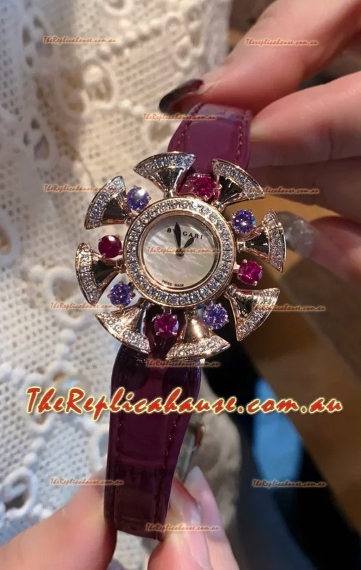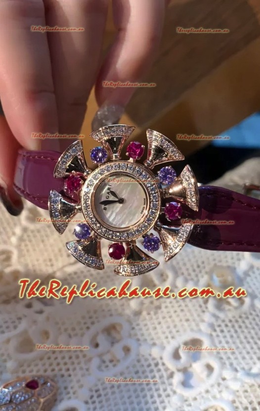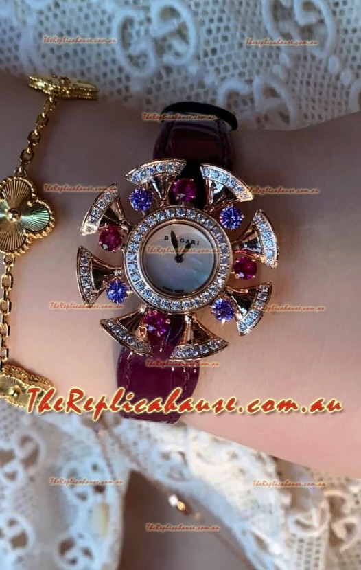 Bvlgari Divas's Dream Edition Watch in Rose Gold Casing - Diamonds Paved Bezel Swiss Replica
