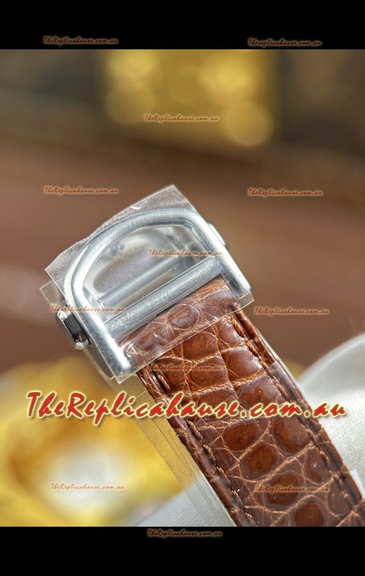 Genuine Leather Strap with Cartier Markings/Engravings and Double Folding Clasp