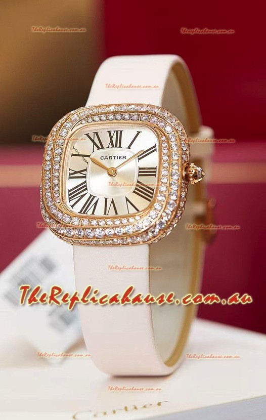 You're reviewing: Coussin De Cartier Rose Gold Swiss Replica Watch White Strap