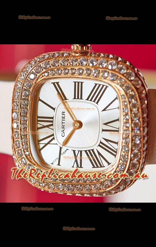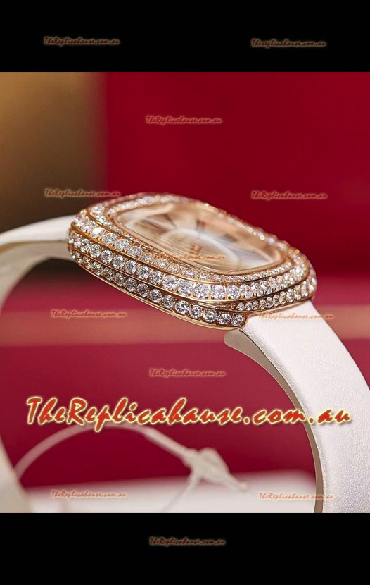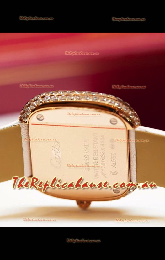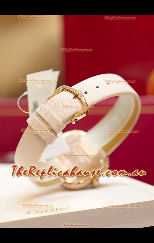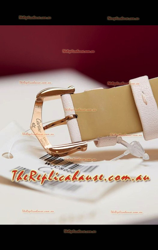 Coussin De Cartier Rose Gold Swiss Replica Watch White Strap