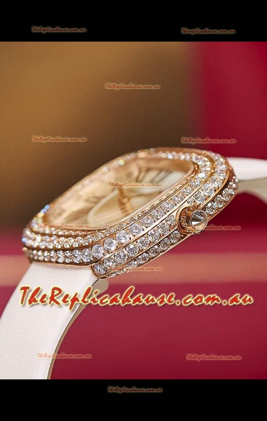 18K Rose Gold Plating on 904L Stainless Steel Case with solid Case back complete with Cartier Markings and Engravings