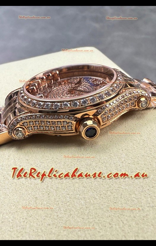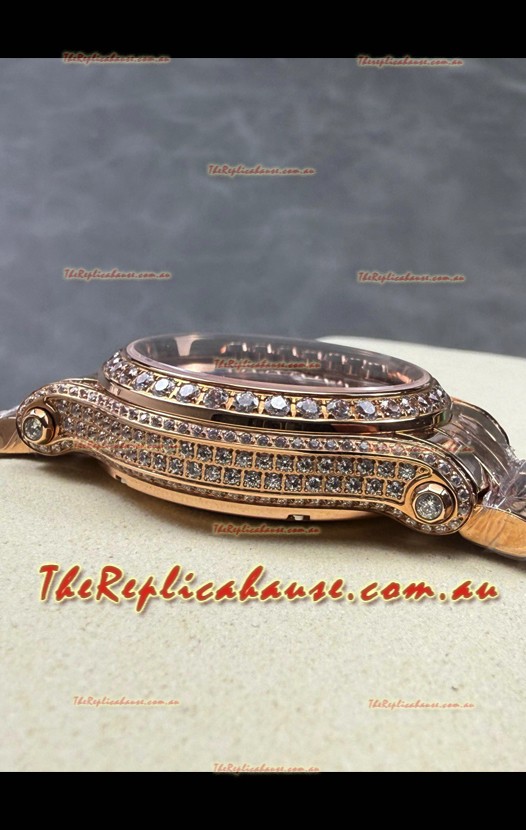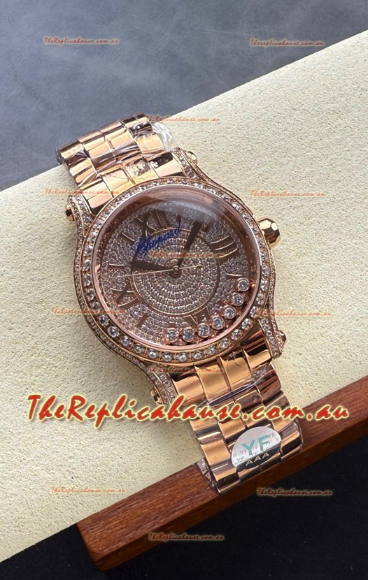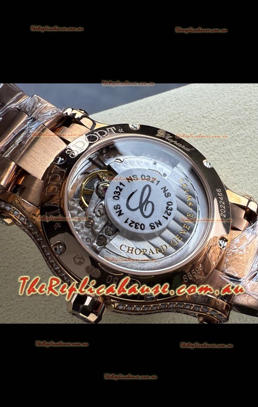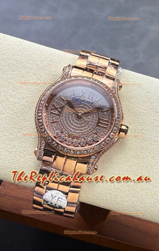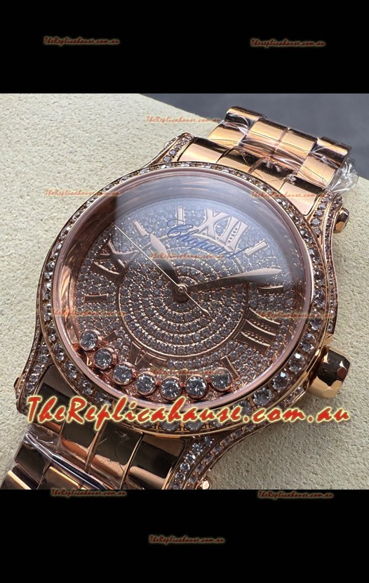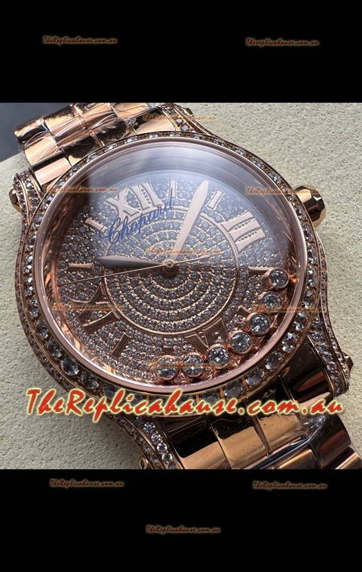 Chopard Happy Sport Super Clone Automatic Watch 36MM in Rose Gold Casing Mossanites Dial