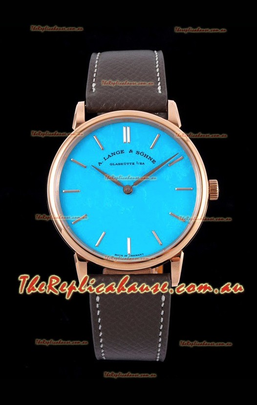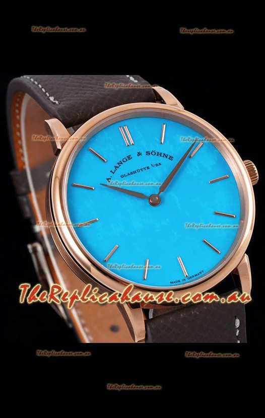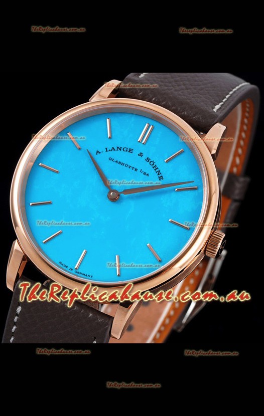 A.Lange & Sohne Saxonia Thin Swiss Replica Watch Rose Gold Case Tiffany Blue Dial