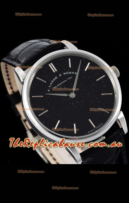 A.Lange & Sohne Saxonia Thin Swiss Replica Watch Steel Case Black Dial