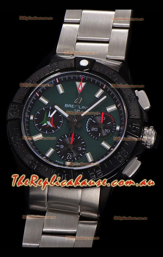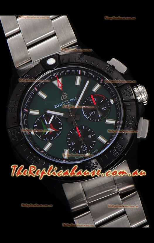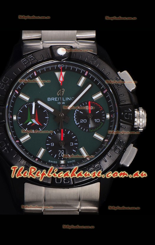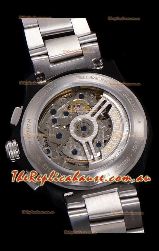 DLC Coating on 904L Steel Case complete with Breitling markings and Details as per the originals.