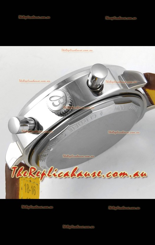 Genuine Swiss 7753 28,800 VPH Movement with Chronograph Feature exactly like the Authentic. Functional Chronograph Feature as per the Originals