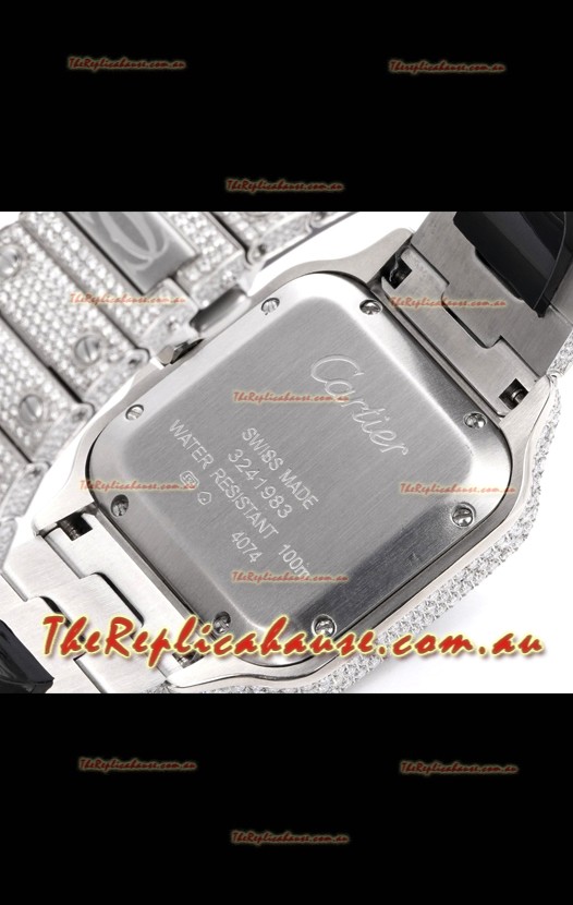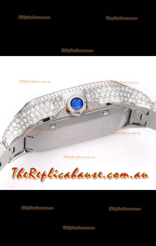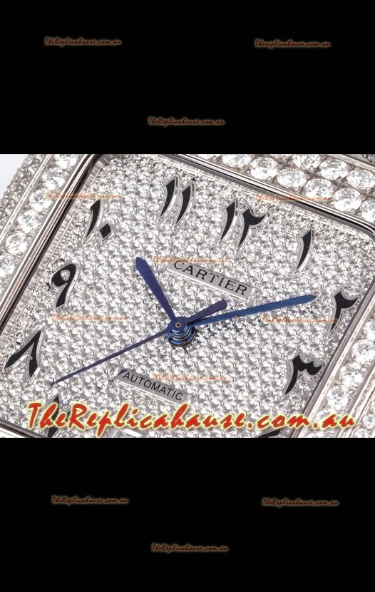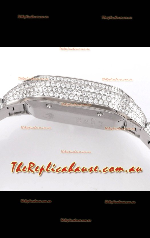 You're reviewing: Cartier "Santos De Cartier" Stainless Steel W/ Diamonds Arabic Dial 1:1 Mirror Replica - 40MM - Genuine Diamonds