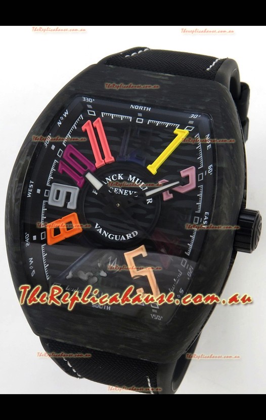 Franck Muller Super Clone Vanguard V45 Racing Carbon Watch in Nylon Strap