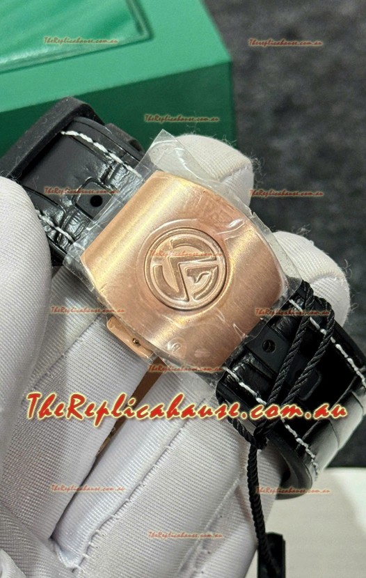 Genuine High Quality Leather Strap with Franck Muller Markings and Engravings with Stainless Steel PVD Coated Double Folding Clasp