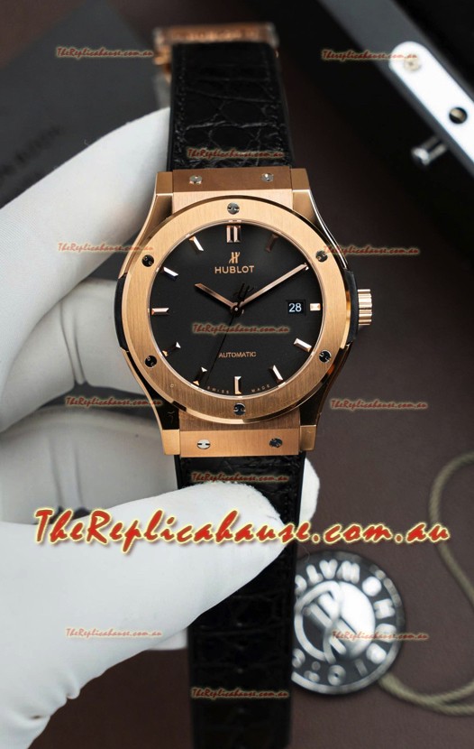 Hublot Super Clone Classic Fusion Titanium Rose Gold Black Dial 42MM Watch