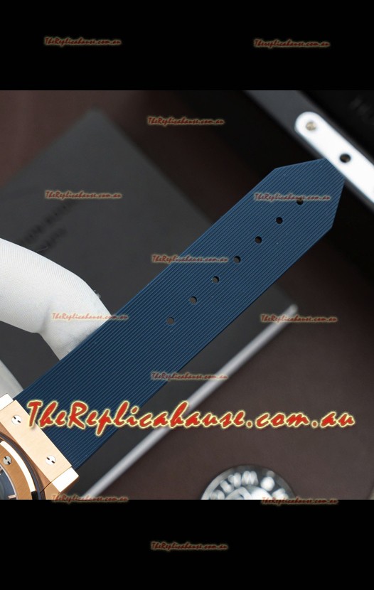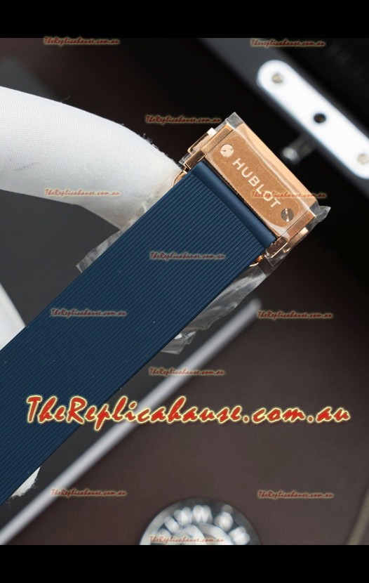 Rubber Strap with Rose Gold Folding Clasp complete with Hublot Markings and Engravings.