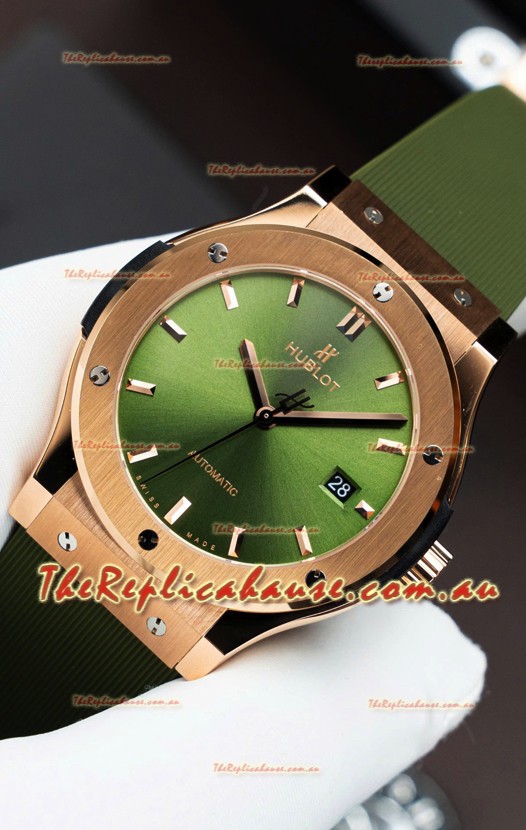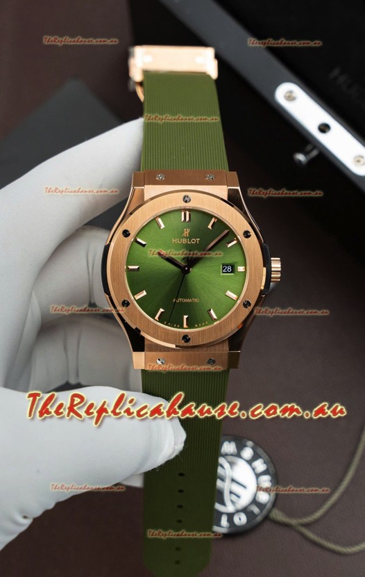 Hublot Super Clone Classic Fusion Rose Gold Green Dial 42MM Watch