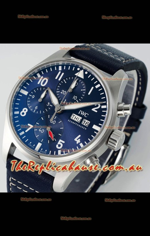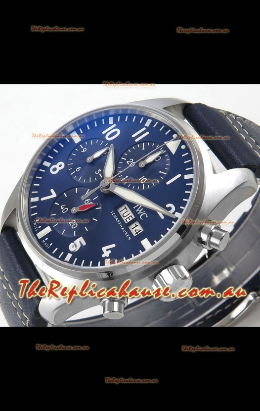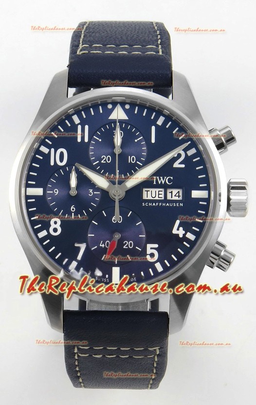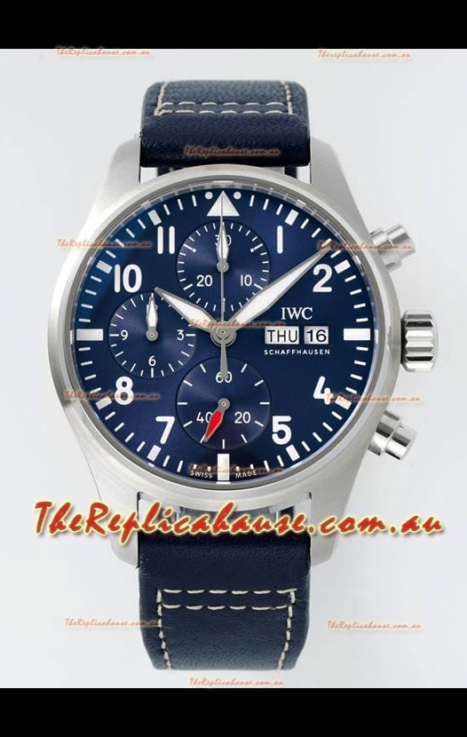 IWC Super Clone Pilot Chronograph Edition Blue Dial Leather Swiss Replica Watch