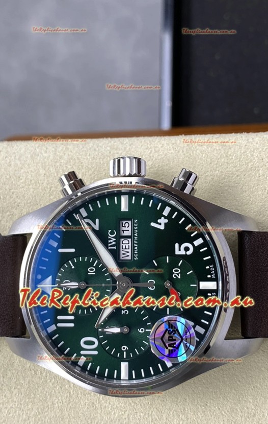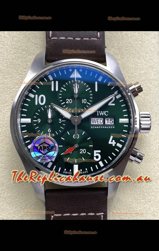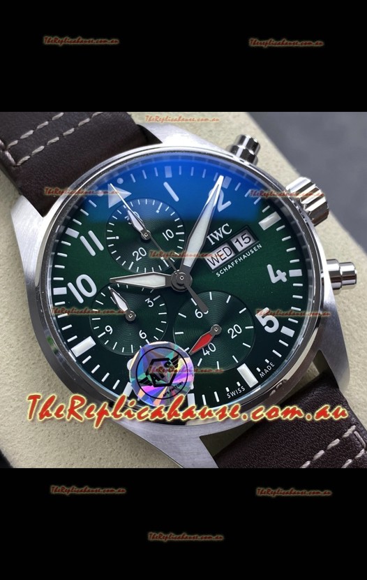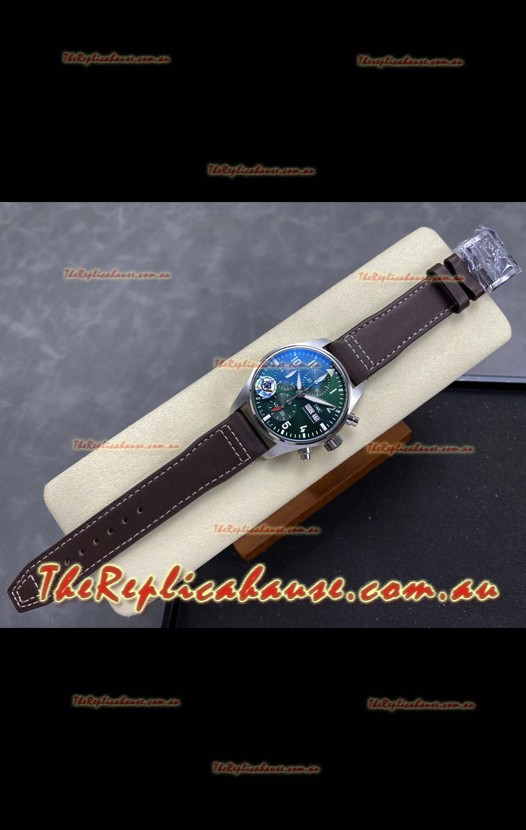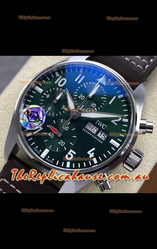 IWC Super Clone Pilot Chronograph Edition Green Dial Leather Swiss Replica Watch