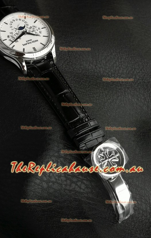 Genuine Leather Strap with Steel Folding Clasp complete with Patek Philippe Markings.
