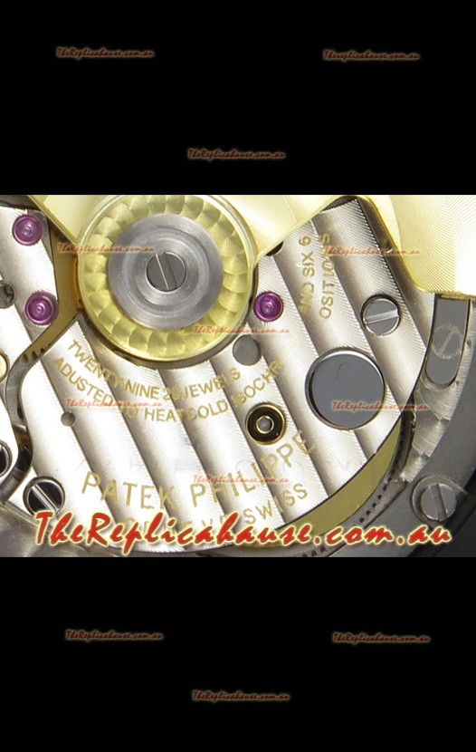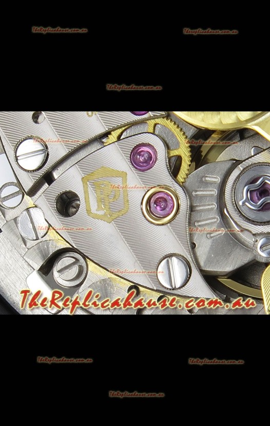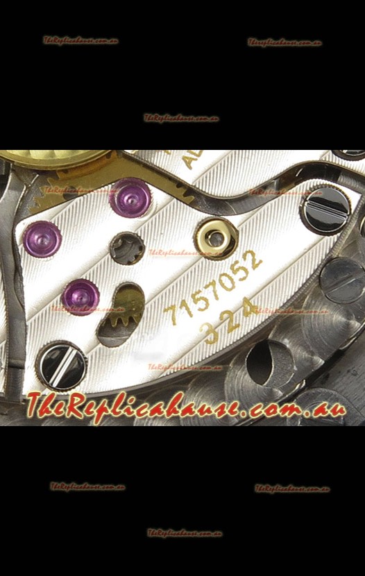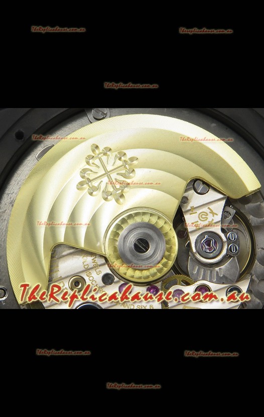 Genuine Swiss ETA9015 Movement Modified to Resemble the PATEK 324SC Movement. Aligned exactly like the Original Patek Philippe Movements with Updated Rotor