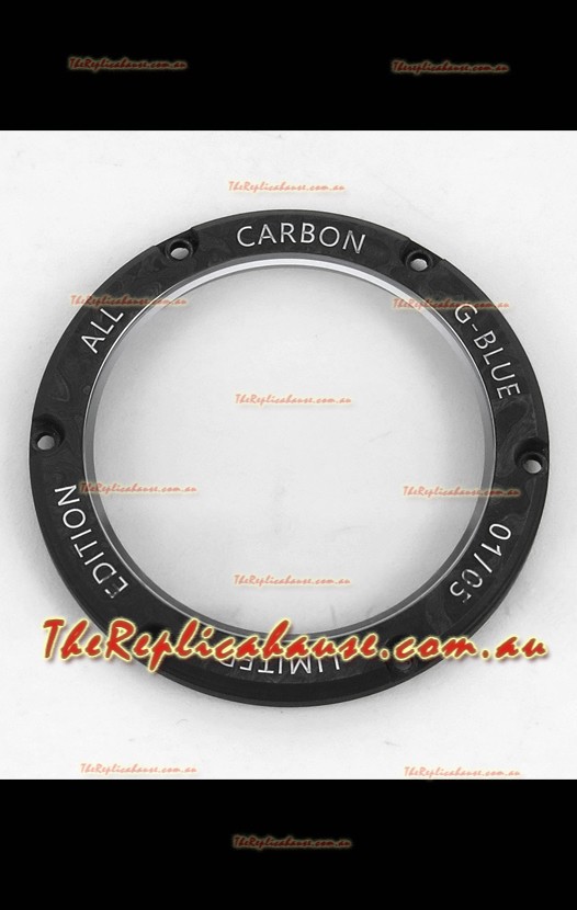 Blue Carbon Dial with Date Window at 3 O'clock. Super Lumed Bright Hour Markers.