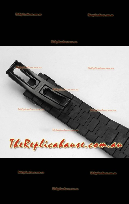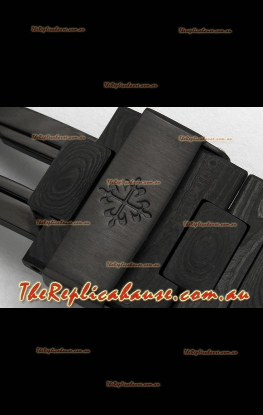 Forged Carbon Fiber Strap linked with Pins as per the originals with Signature Patek Philippe Clasps as per the originals.