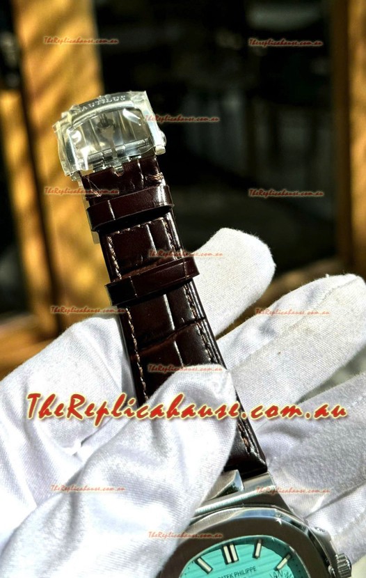 Genuine Leather Strap with Double Fold Stainlless Steel Clasps with Patek Philippe Markings/Engravings