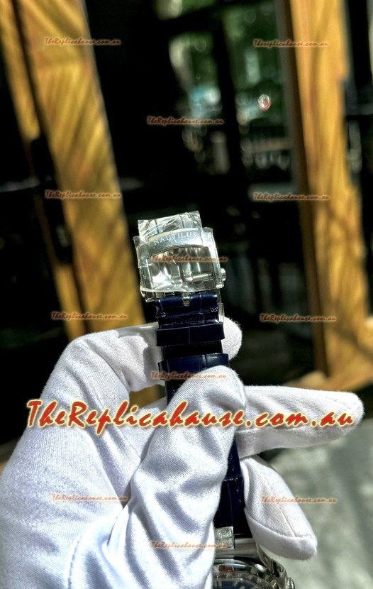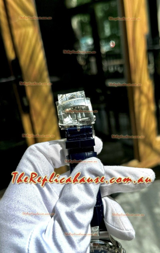 Genuine Leather Strap with Double Fold Stainlless Steel Clasps with Patek Philippe Markings/Engravings