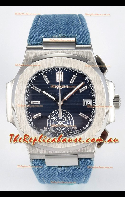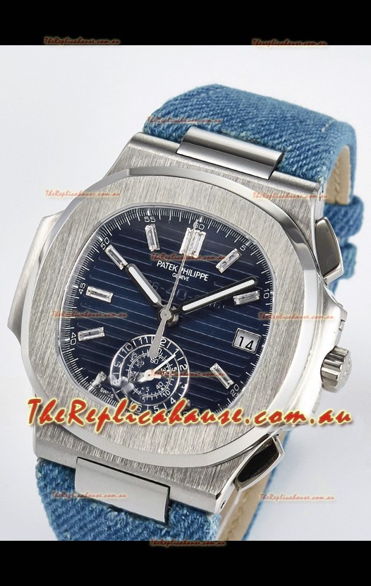 Patek Philippe Nautilus 5980/60G-001 Blue Dial Fabric Strap Crystal Numerals