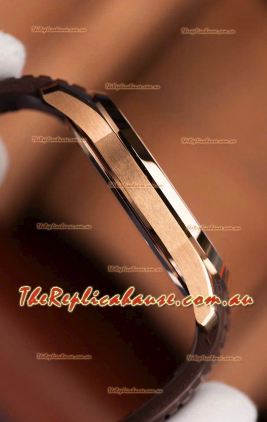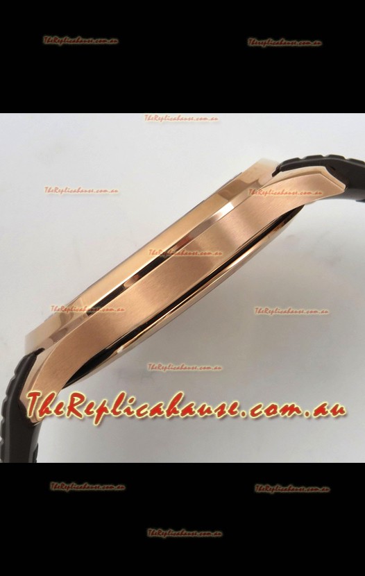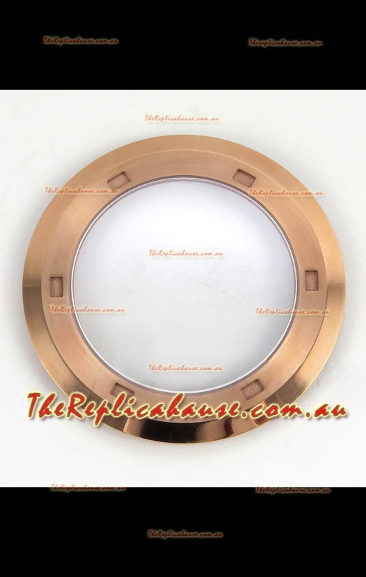 Rose Gold Plating on 904L Polished Stainless Steel Case with Brushed Bezel exactly as per the original