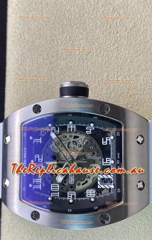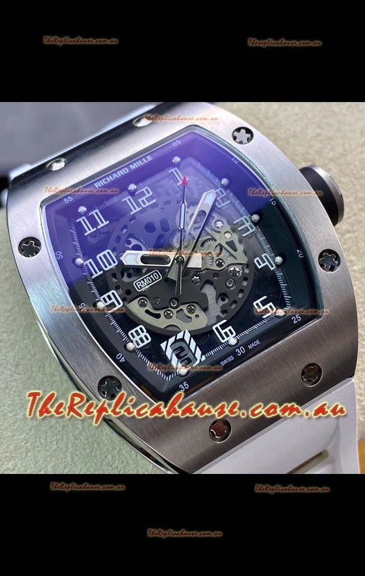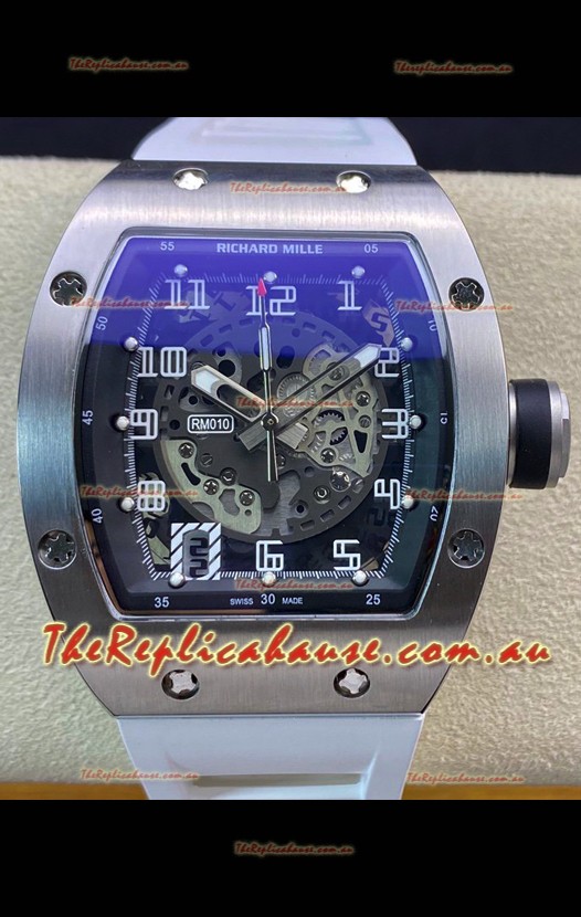 Richard Mille RM010 Stainless Steel Replica Watch in White Strap