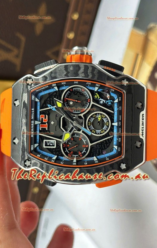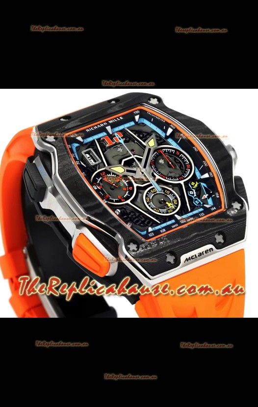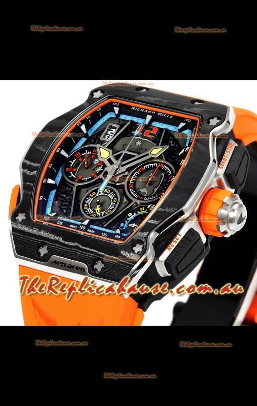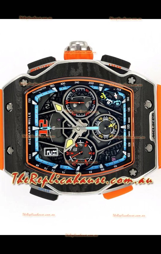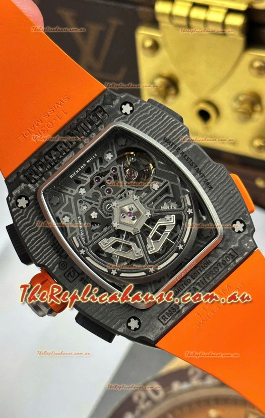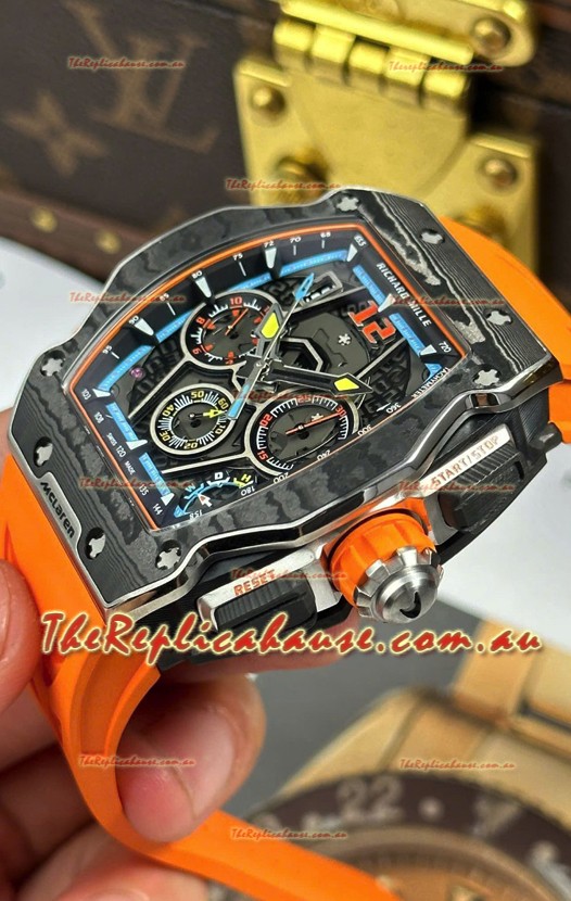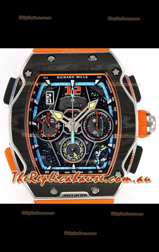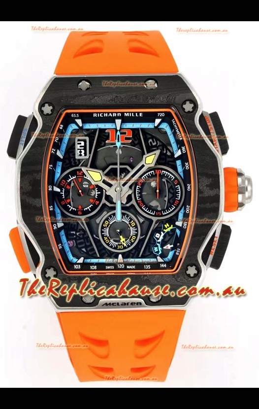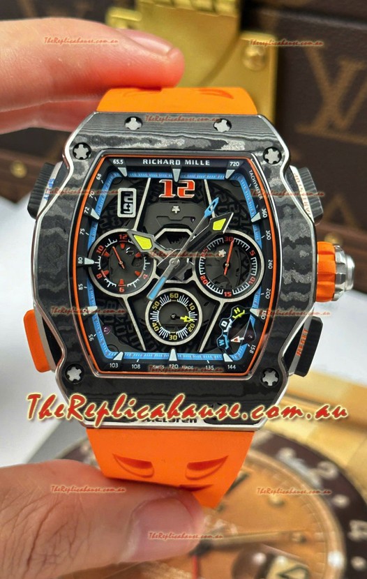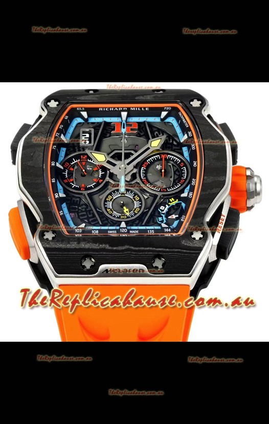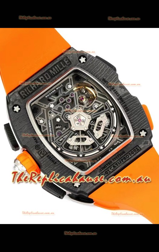 Richard Mille Super Clone RM65-01 Carbon Casing Replica Watch in Orange Strap