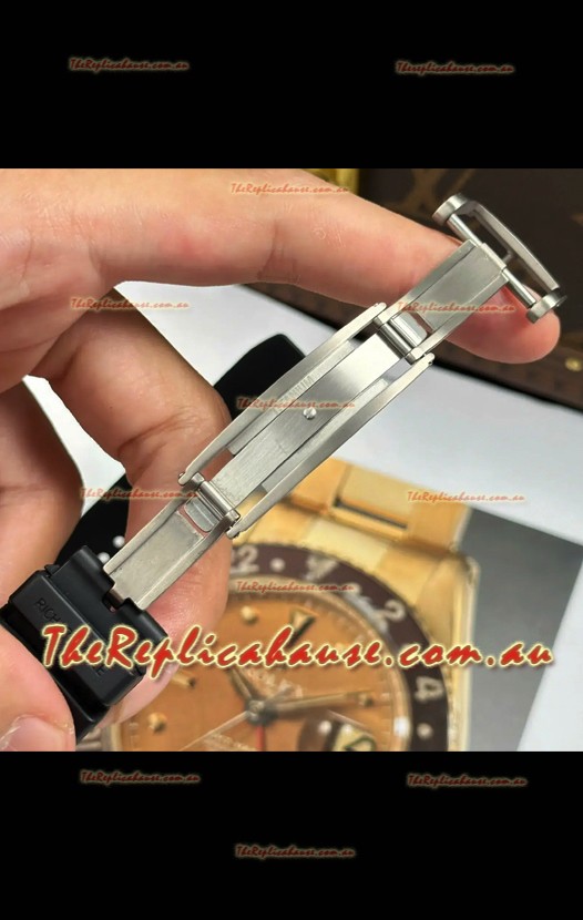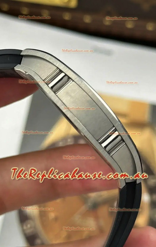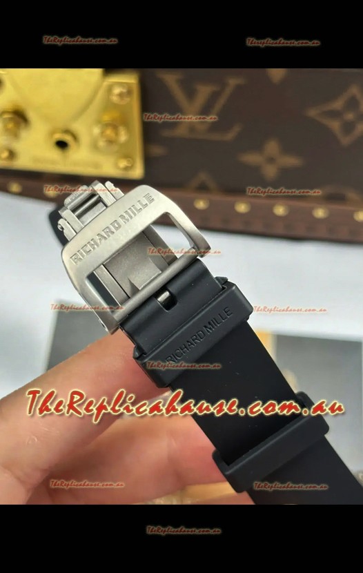 Black Rubber Strap with Folding Clasp with Steel Clasps Complete with Richard Mille Markings and Engravings