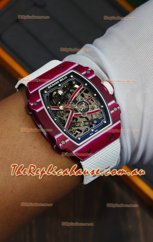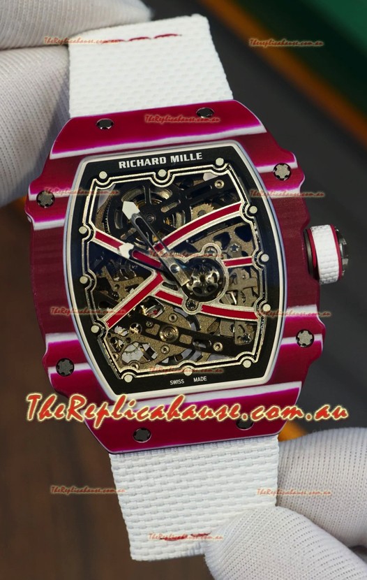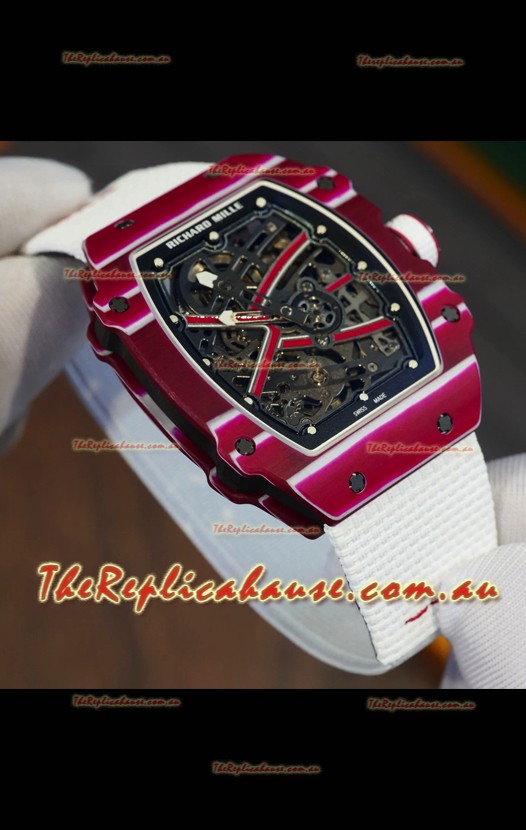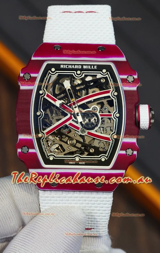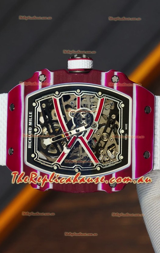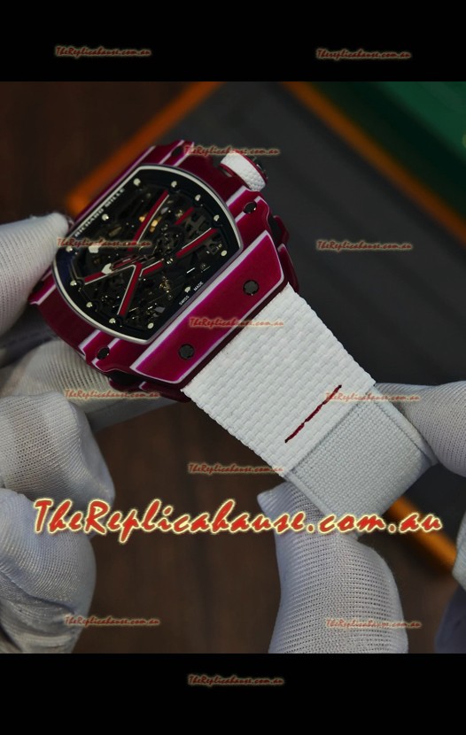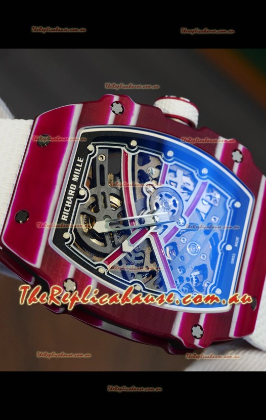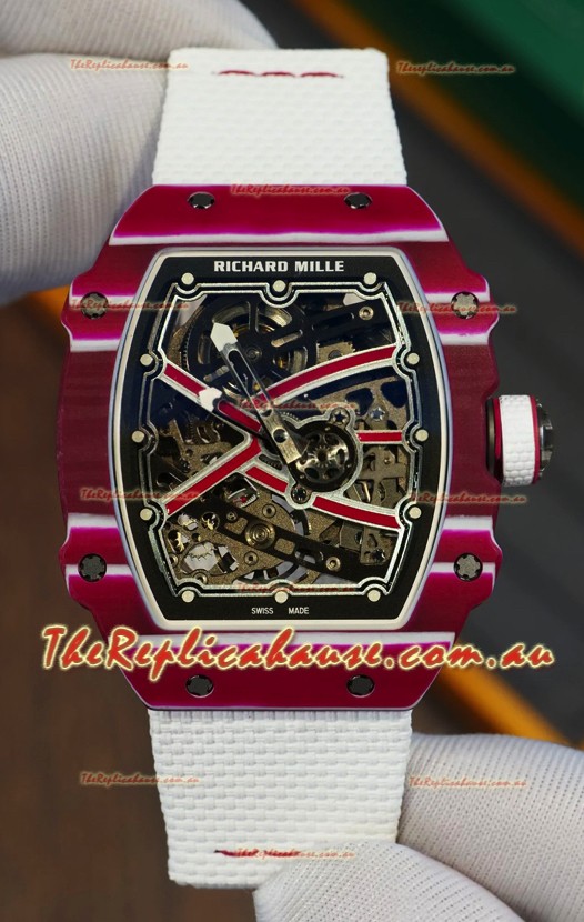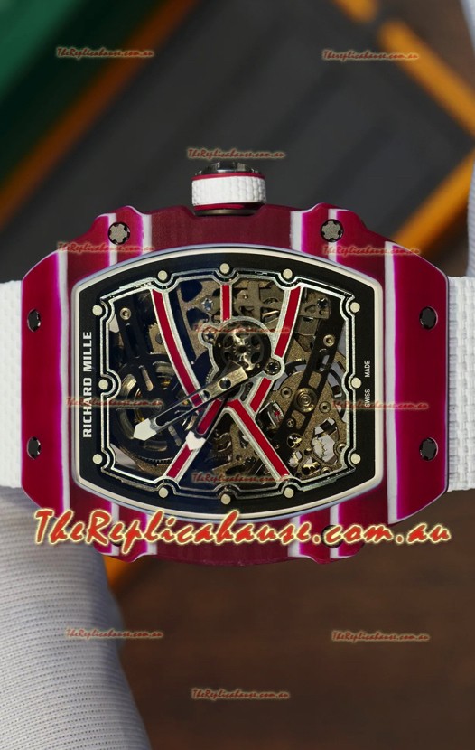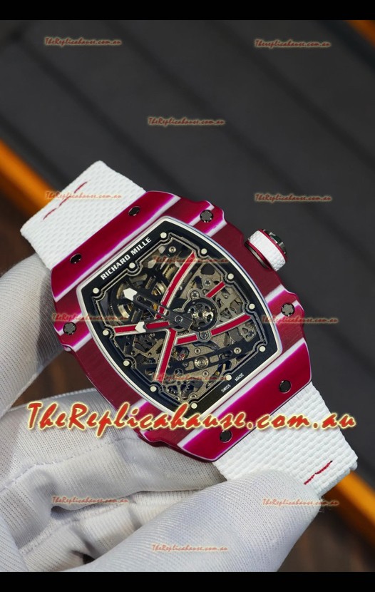 Richard Mille Super Clone RM67-02 Mutaz Barshim Red Carbon TPT 37 Grams Watch White Strap