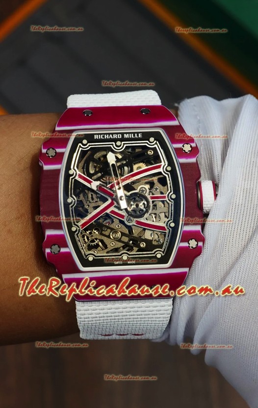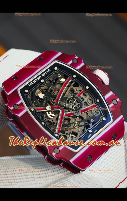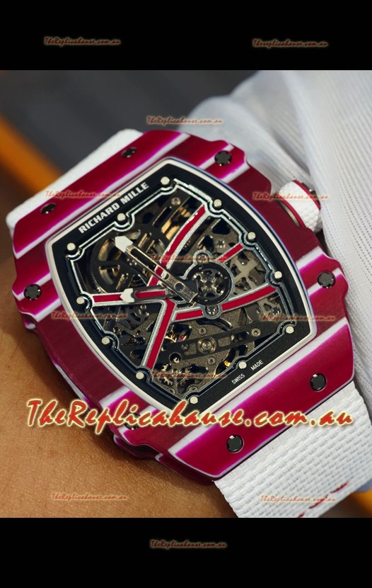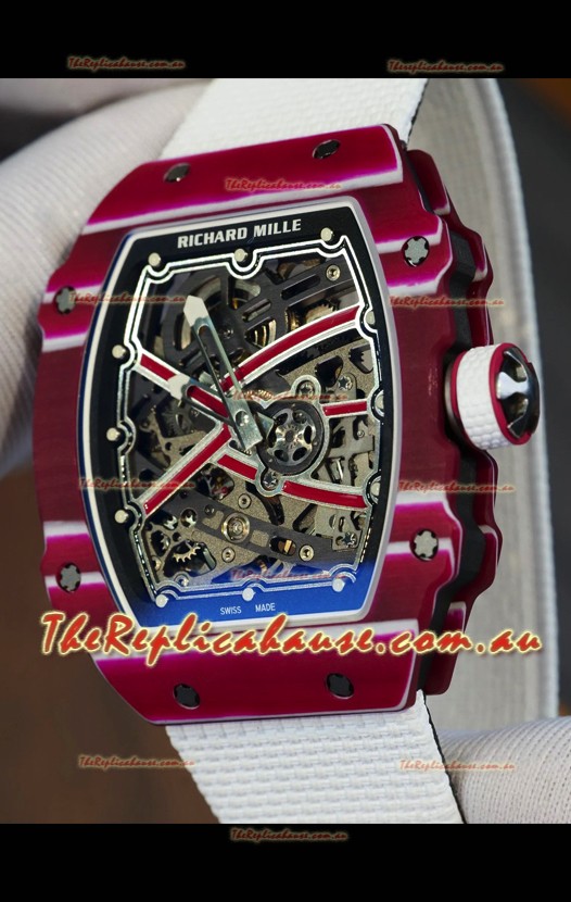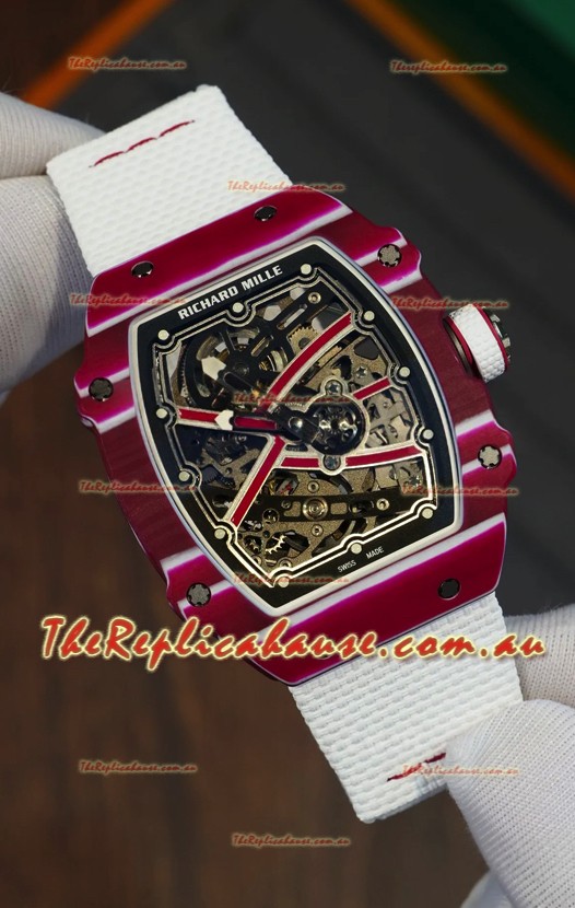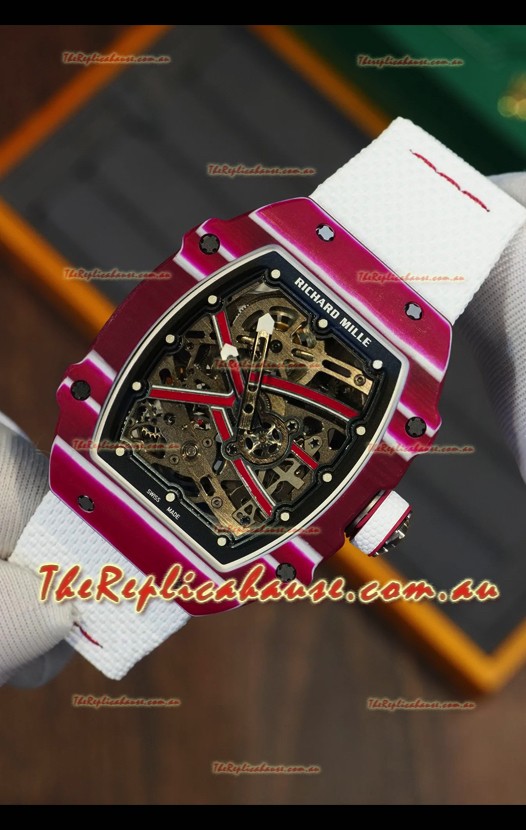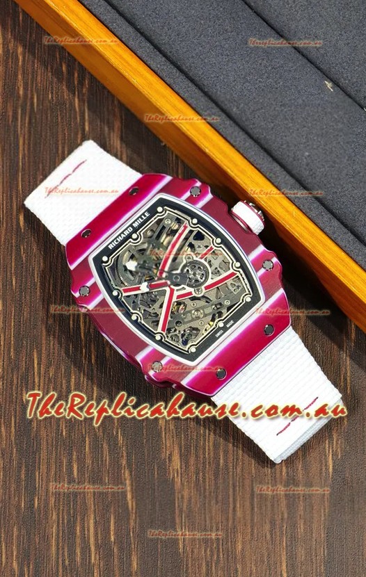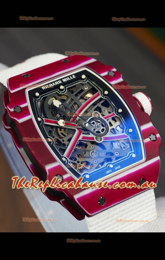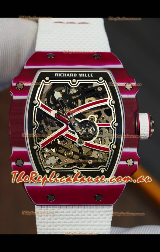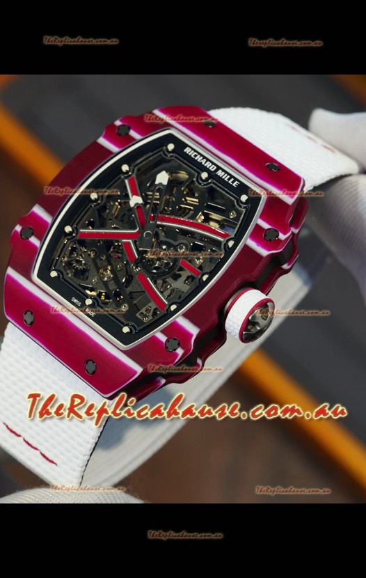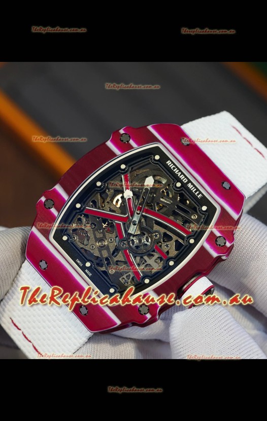 Richard Mille Super Clone RM67-02 Mutaz Barshim Red Carbon TPT 37 Grams Watch White Strap