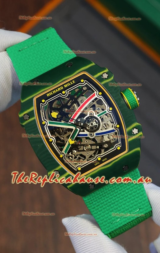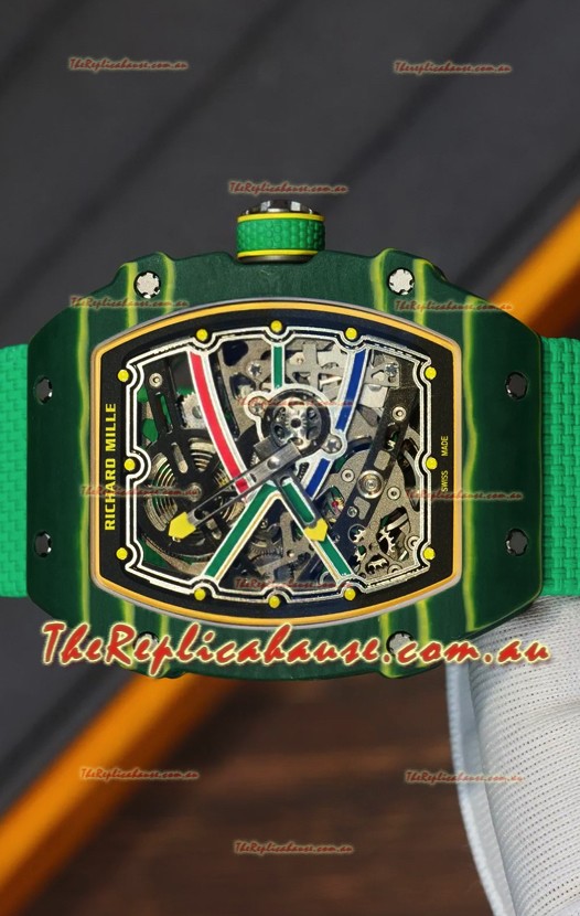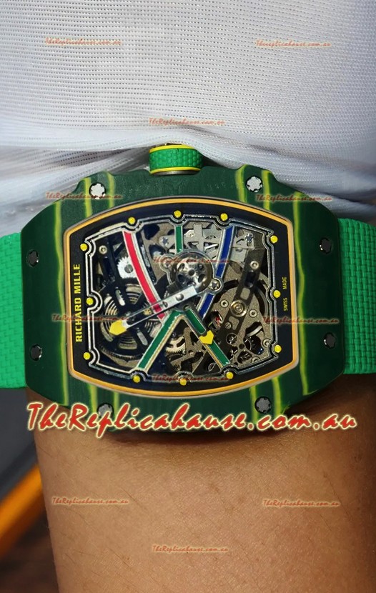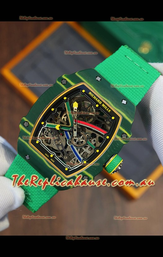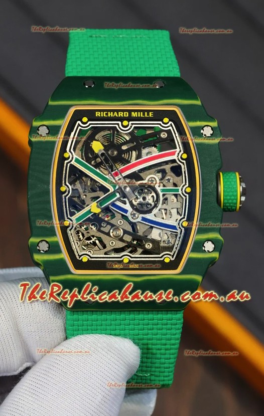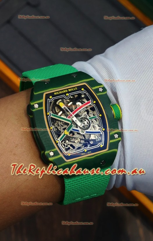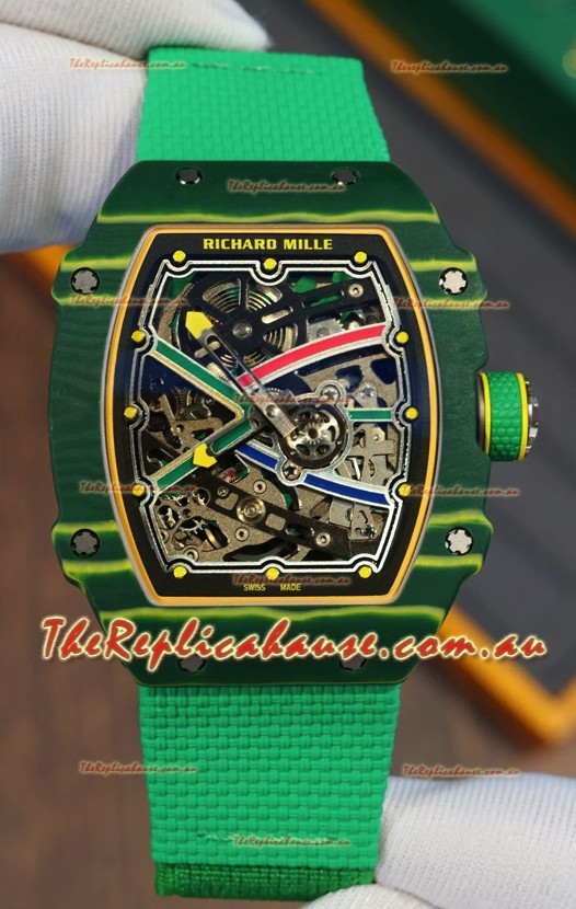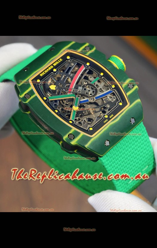 Richard Mille Super Clone RM67-02 Wayde Van Niekerk Green Carbon TPT 37 Grams Watch Green Strap