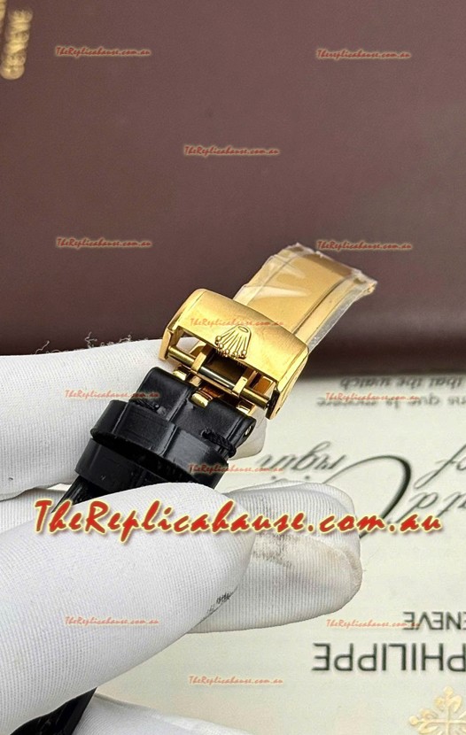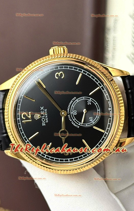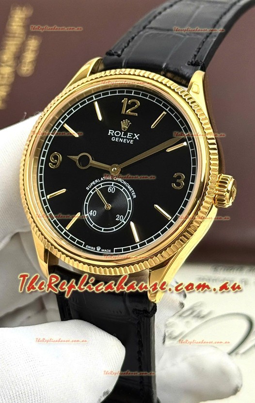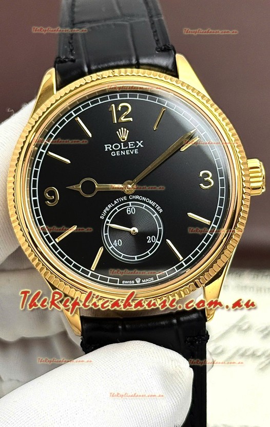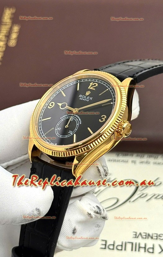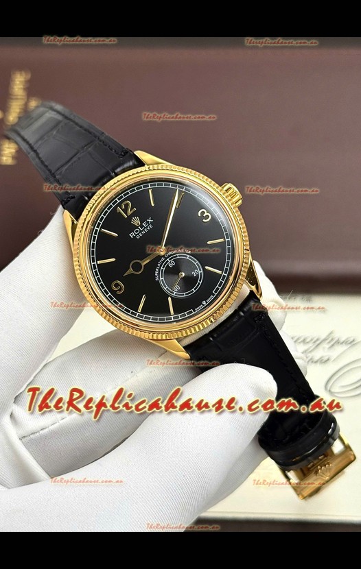 Rolex 1908 Perpetual Swiss Movement Replica Watch in Rose Gold Casing Black Dial