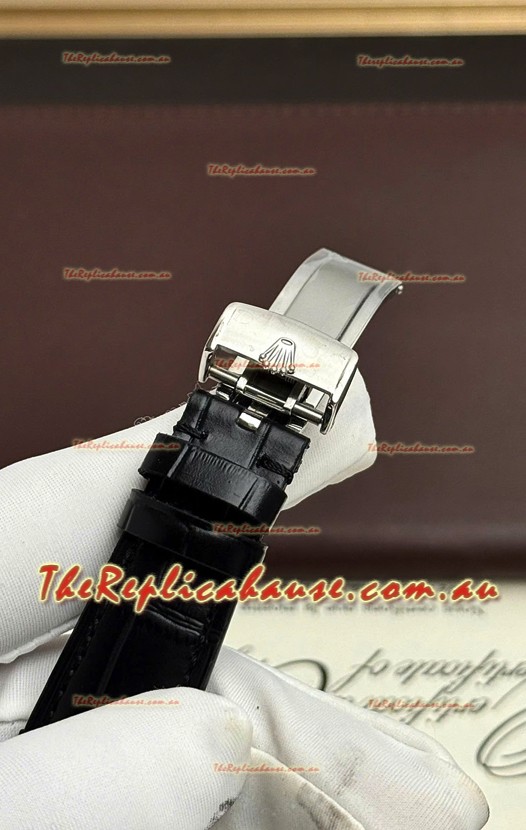 Genuine Black Leather Strap with Stainless Steel Deployant Clasps