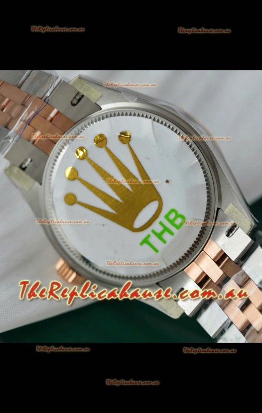 18K Rose Gold Plating on 904L Stainless Steel Two Tone Polished Case with Bezel as per the original.