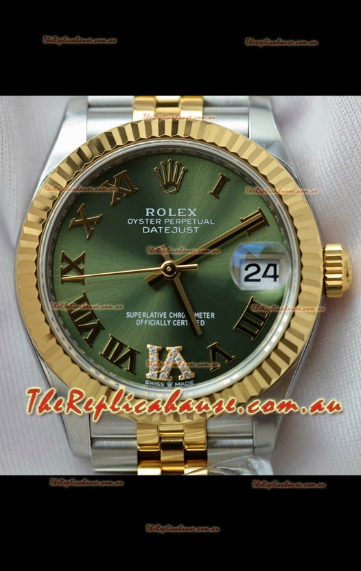 Rolex Datejust Cal.3235 Movement Super Clone Rose Gold 2 Tone 31MM Green Dial Watch