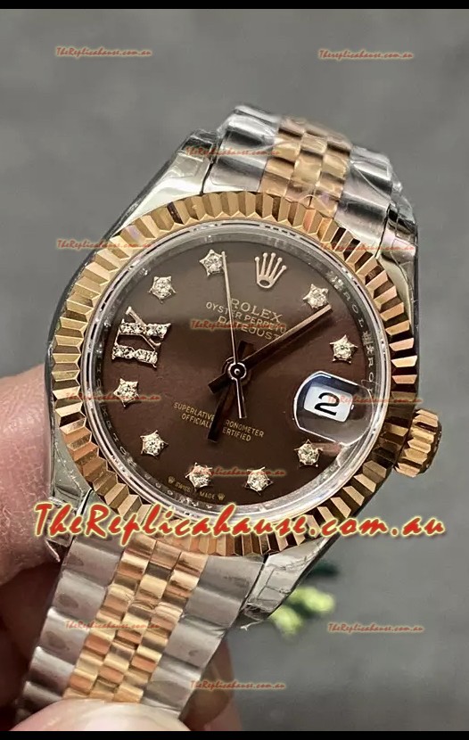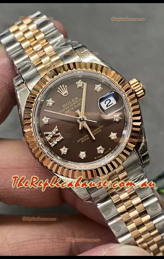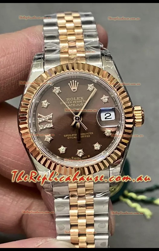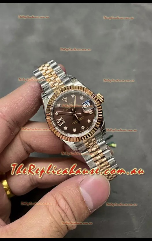 Rolex Datejust Super Clone Brown Dial Rose Gold Steel Watch 28MM