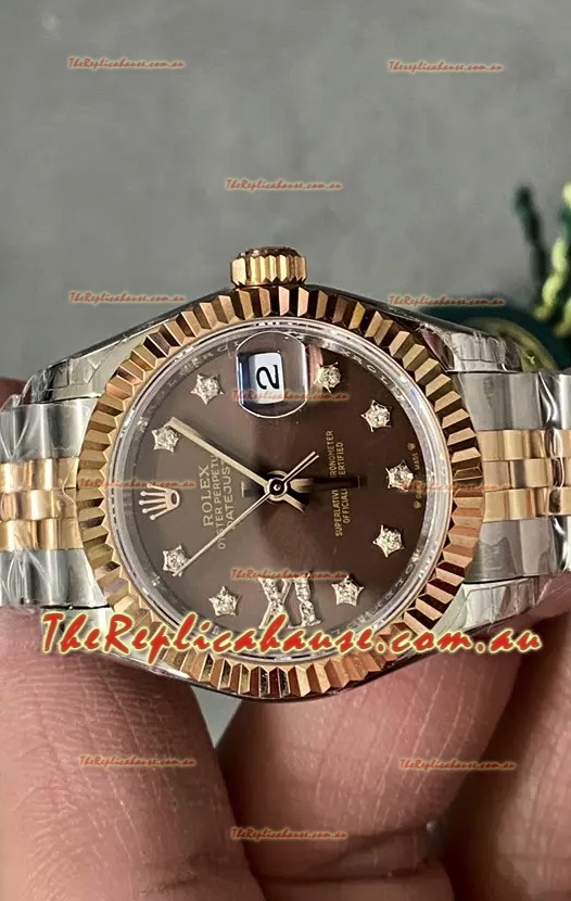You're reviewing: Rolex Datejust Super Clone Brown Dial 2 Tone Rose Gold Watch 28MM