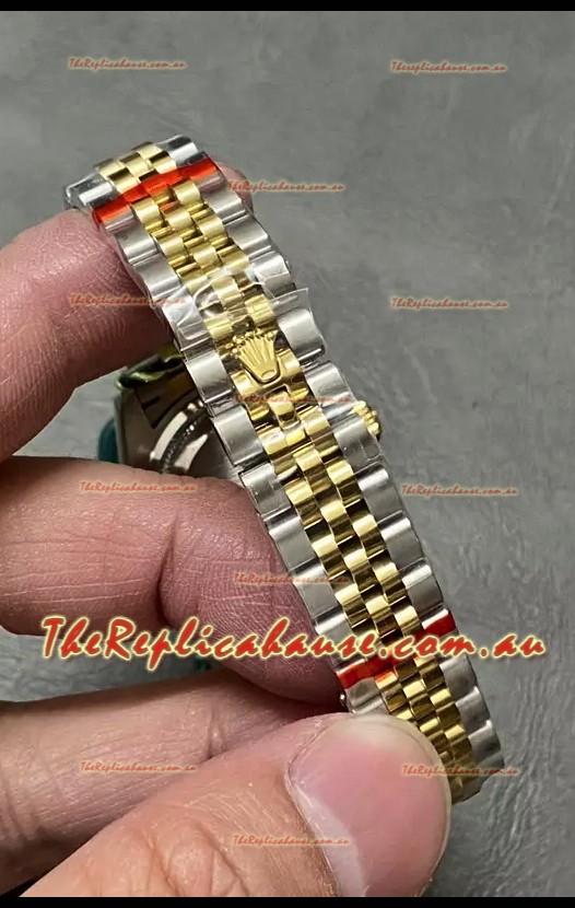 18K Yellow Gold Plating Two Tone on 904L Stainless Steel with Folding Clasp, End links match up Flush with the Case. - A Much Improved Datejust Strap Version