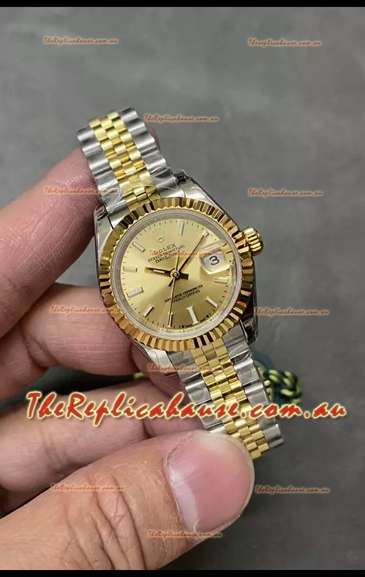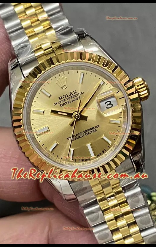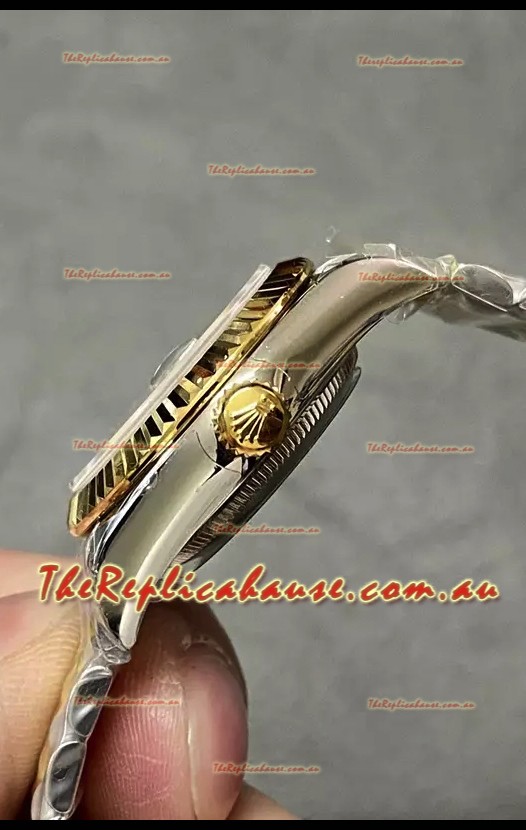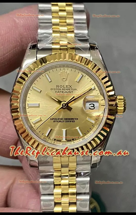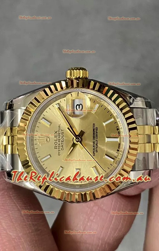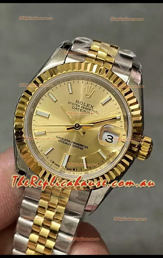 Rolex Datejust Super Clone Gold Dial 2 Tone Yellow Rose Gold Watch 28MM