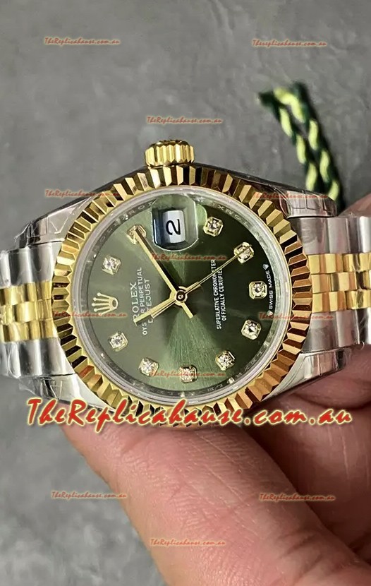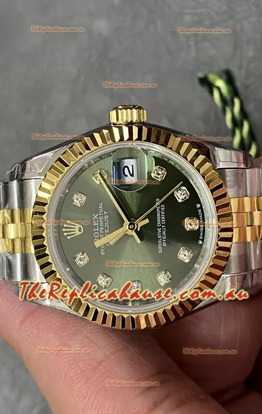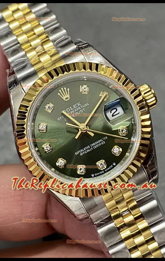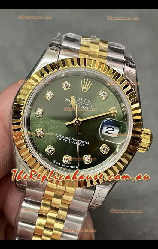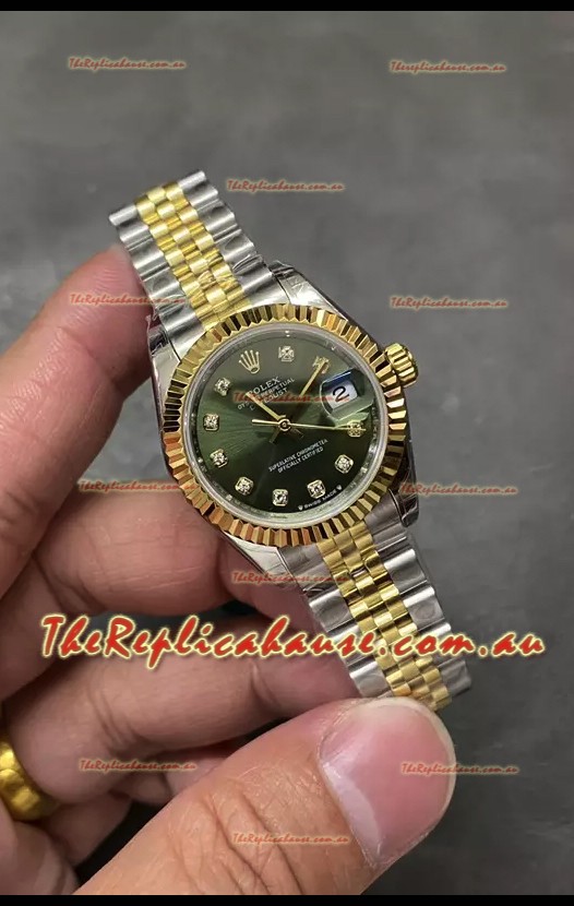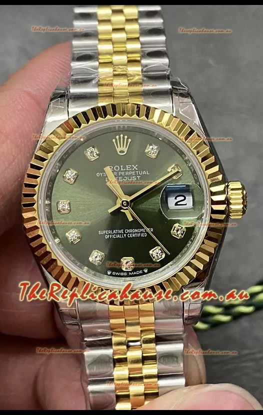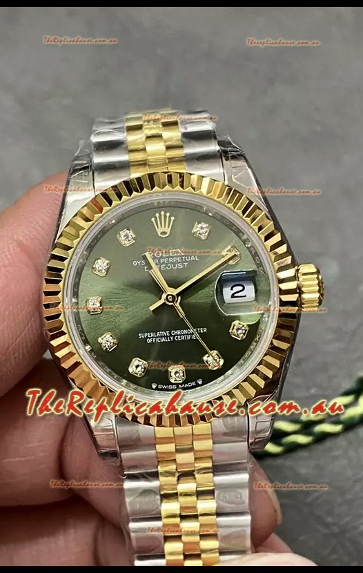Rolex Datejust Super Clone Green Dial 2 Tone Yellow Rose Gold Watch 28MM