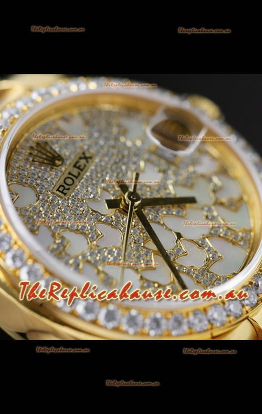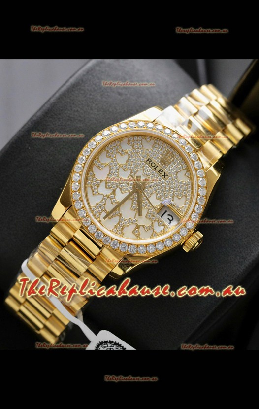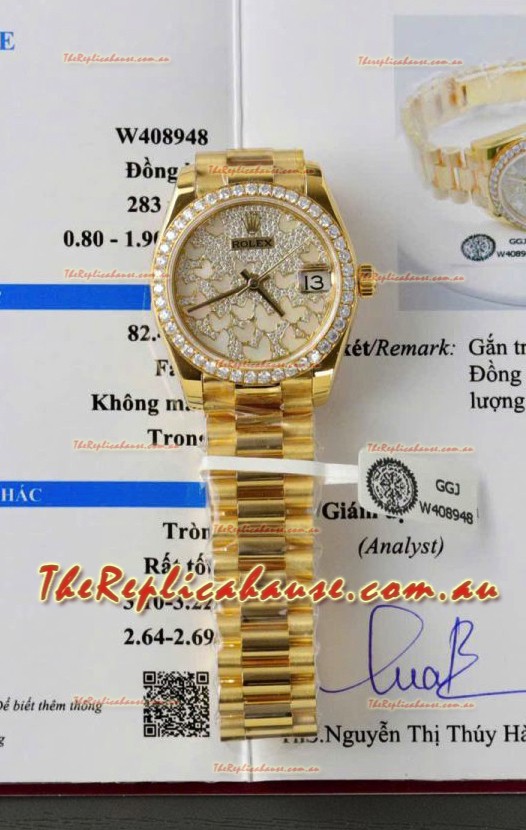 Rolex Datejust Super Clone Mossanites Butterfly Dial 31MM Yellow Gold Watch