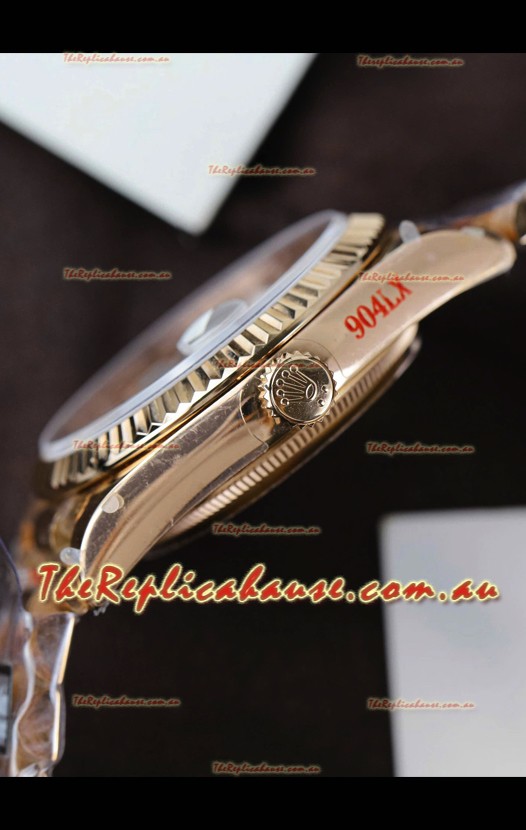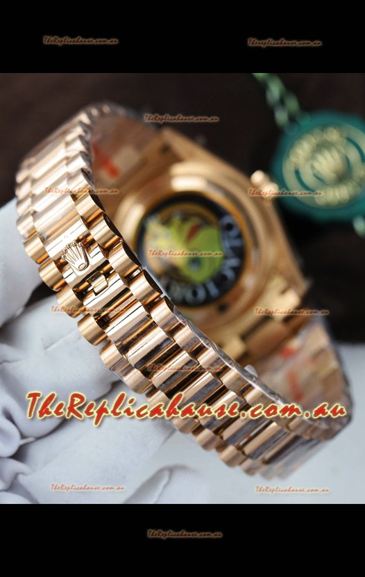 18K Rose Gold Plating on 904L Stainless Steel New Design President Strap with Folding Clasps complete with Rolex Markings and Engravings